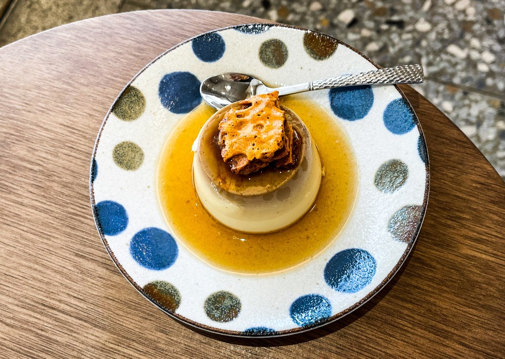 布丁總是討人歡心,簡簡單單但一口卻是陶醉。尤其近來吃到有蛋含量的食物都算是奢侈了。飽滿圓滑的外型,頂上為黑焦糖以及一塊黑焦糖蛋白餅。