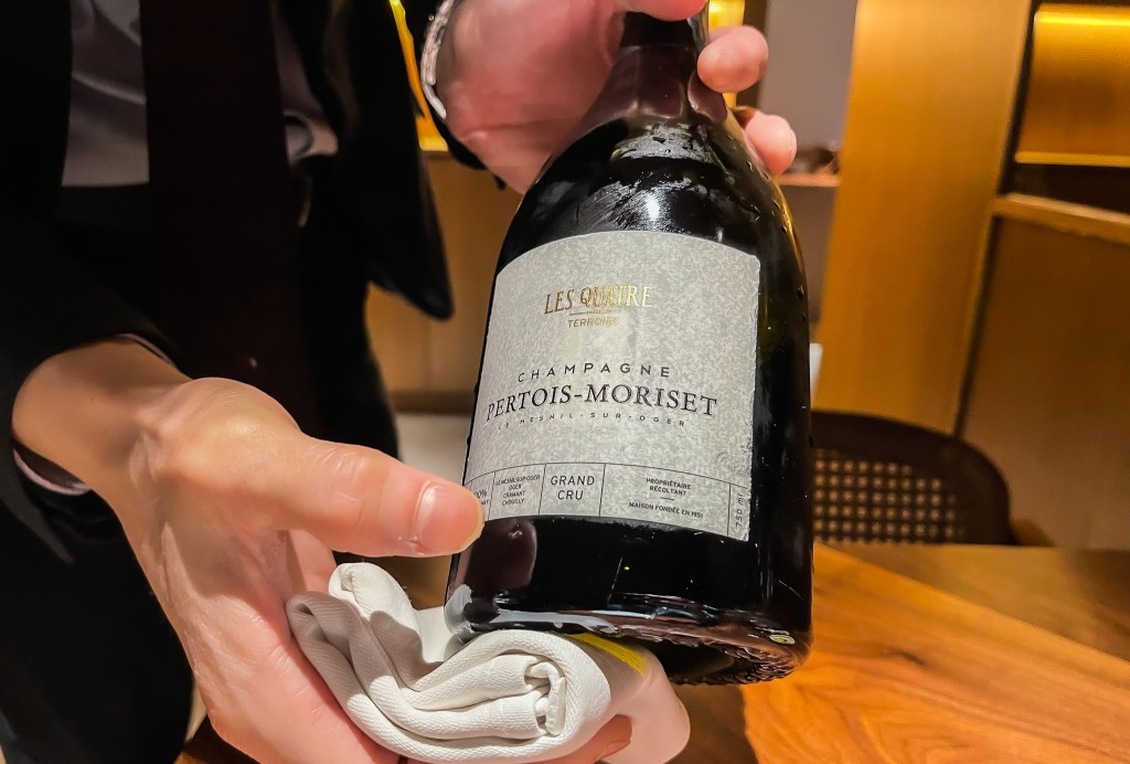 此酒款也是第一杯酒Champagne Pertois-Moriset Les Quatre Terroirs Grand Cru(產地:France 產區:Champagne – Côte des Blancs, 葡萄品種:100% Chardonnay)。
