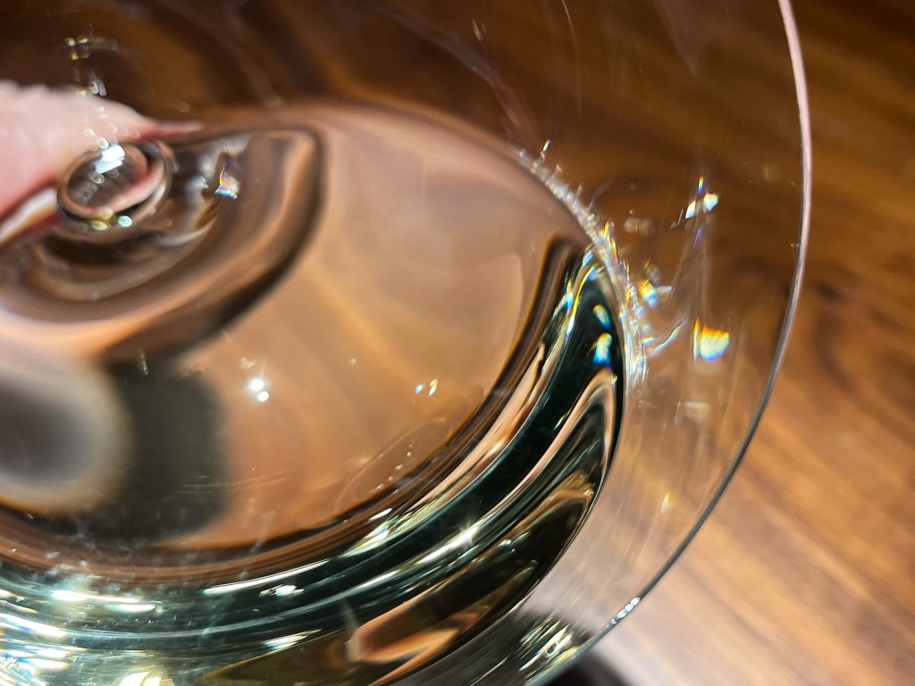 這杯酒有種圓潤感,是輕盈的、優雅的,而色調是一種淡金黃感,酒縁銳利圓潤清幽,氣味上有些收乾甜味多的水果、水梨、棗子、糖蜜感,深聞礦物、乾燥感、辛乾感就出來了。