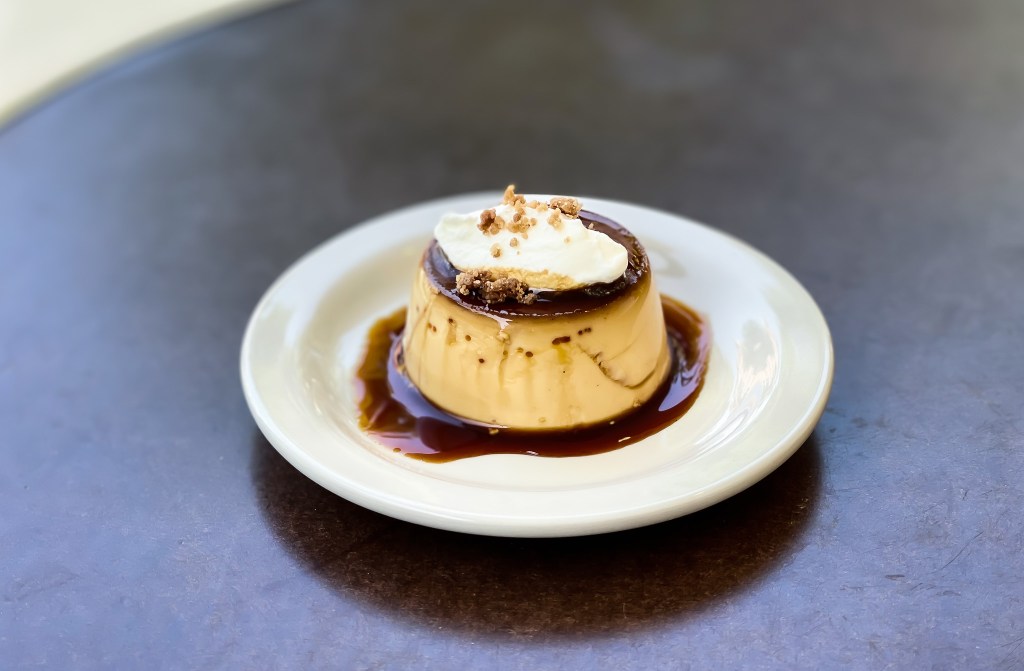 這是一款熟型布丁,儘管不大,奶油、零星的糖味碎餅,以及苦味焦糖。