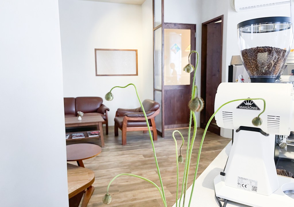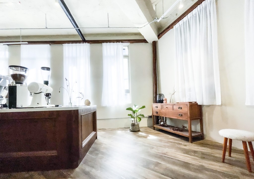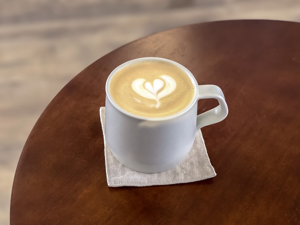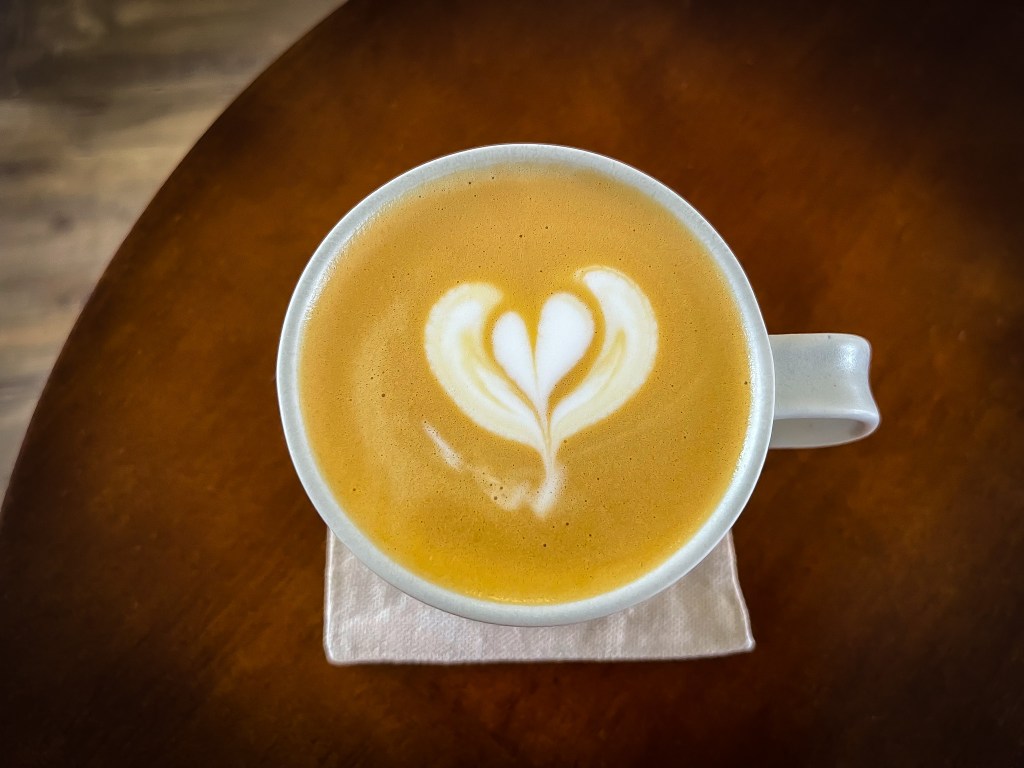 焦糖牛奶色泡沫,輕巧的愛心型拉花,看看環境,聽契合的。微微焦香,果殼、穀物…..。