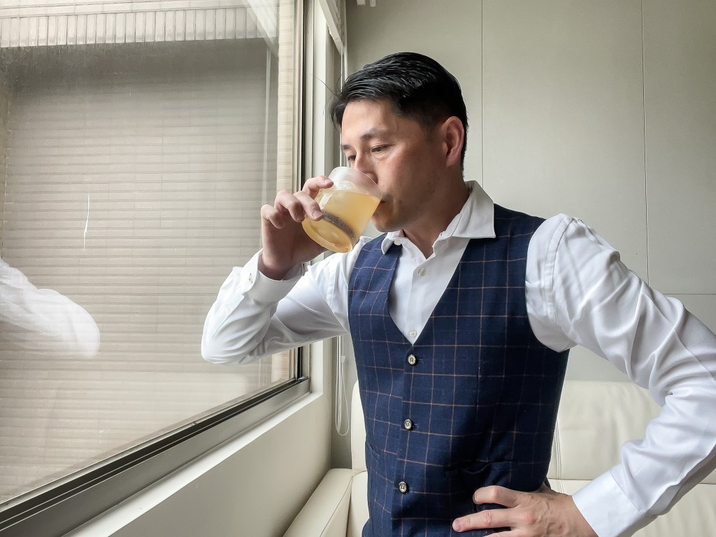 其實這款帶著香甜以及柳橙甜美的酒款,喝起來輕鬆但後面帶來的微醺與激發體內的熱可是不容小覷。所以我勢必會加入冰塊,除了維持冰涼再來用冰融的水逐層淡化酒精與調酒濃度。