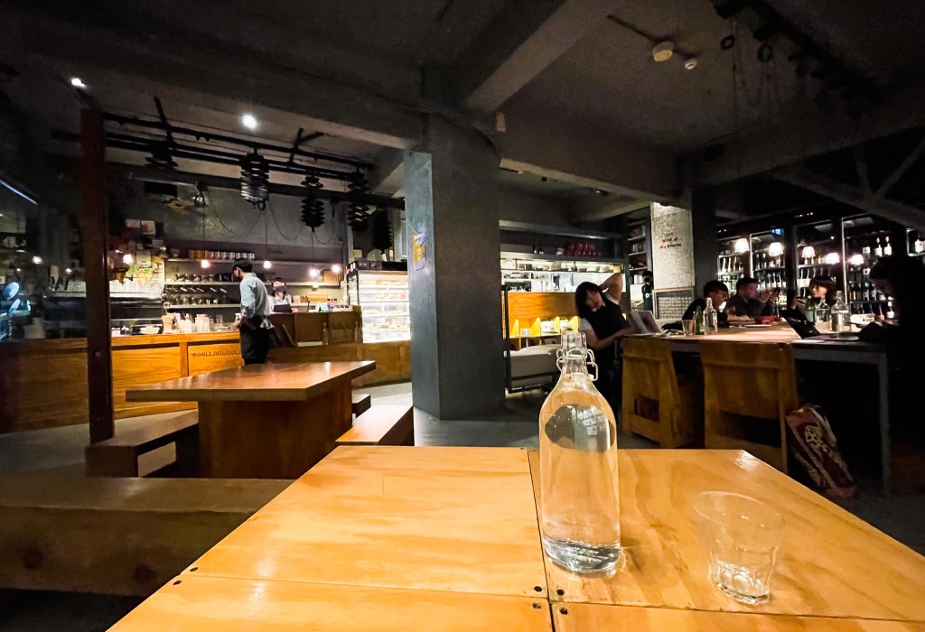本來想打道回府,只是突然想到Woolloomooloo在附近,還可以喝葡萄酒,且再隨性的輾轉來到Woolloomooloo WXY店。來到店裡,談到用餐時,便獲知二樓已包場,只有一樓或酒吧的位置,不過店裡算是通融,我選擇四人座,並沒有刻意拒絕。