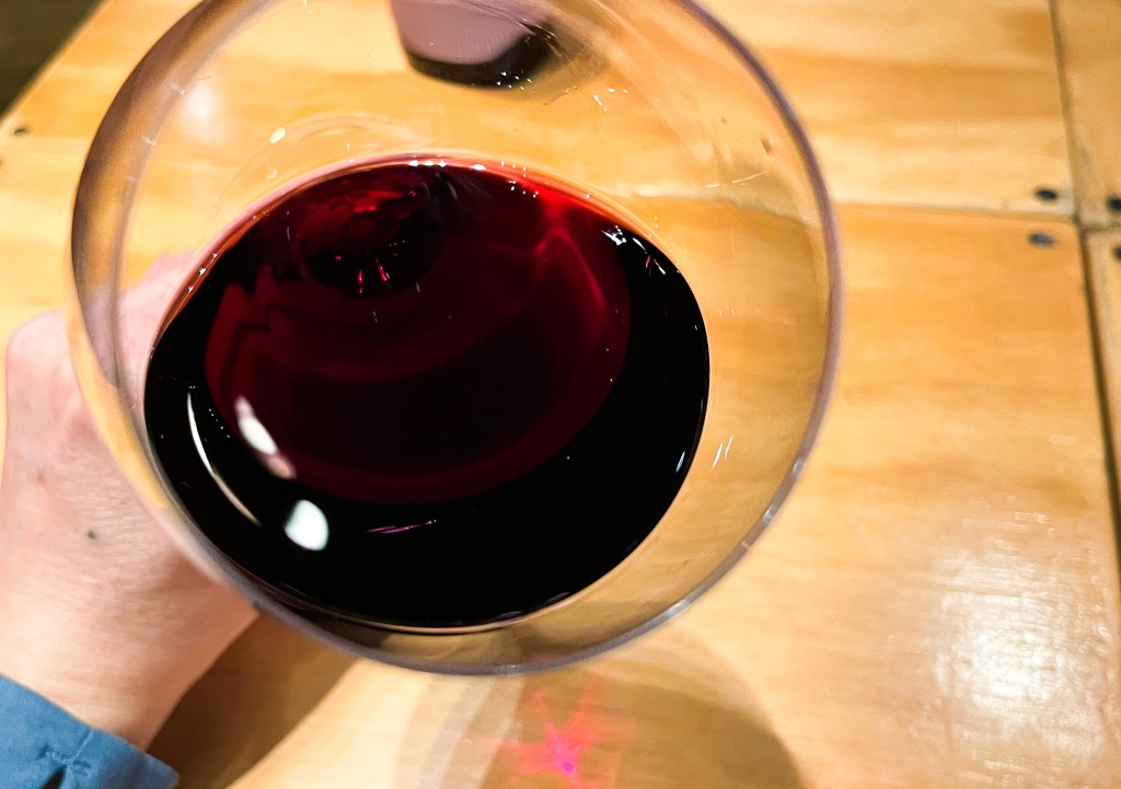 在色調上,深邃莓果紅調,這是一點都不意外,不過酒的色調邊緣俐落浮出透明豐厚的酒緣,而逐次入內表現出,木質晃、皮膚色、覆盆子果色、莓果深紅,紫紅近黑等,我搖晃酒杯,酒緣俐落對應著滑落,優雅乾脆。