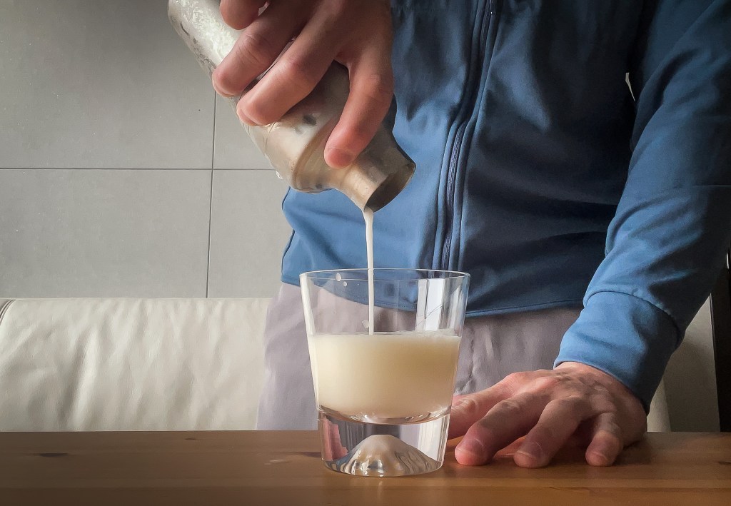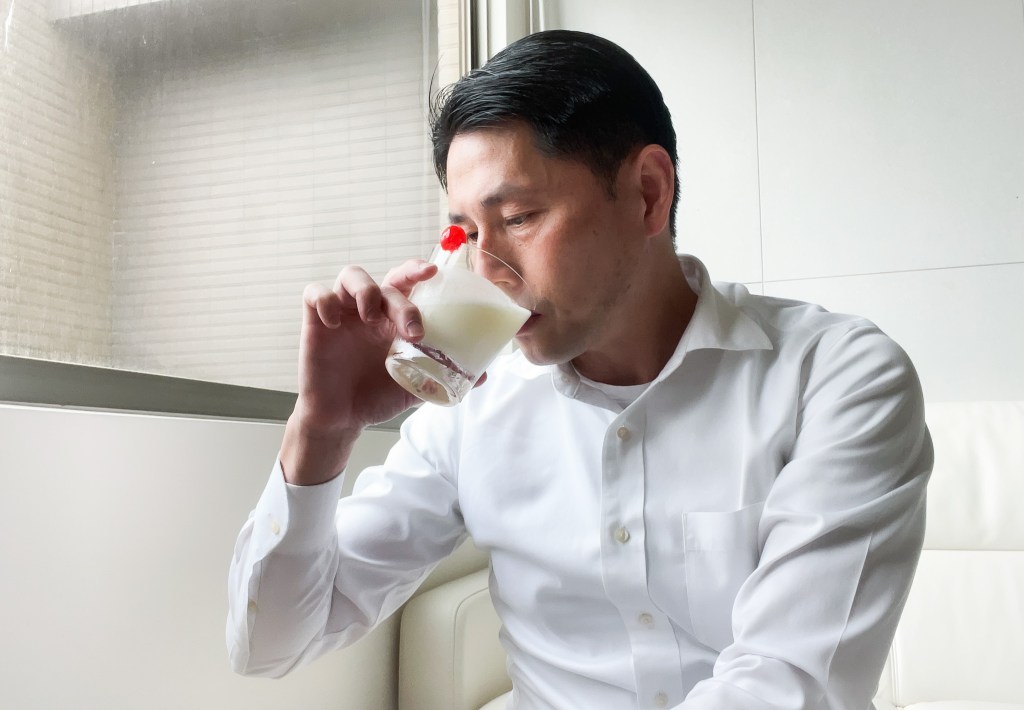 色調乳白,有如富士山頂的冬日雪白,上層周圍是微微的泡沫是蛋白以及奶油搖盪的結果,像乳酸飲品像是優格一樣。