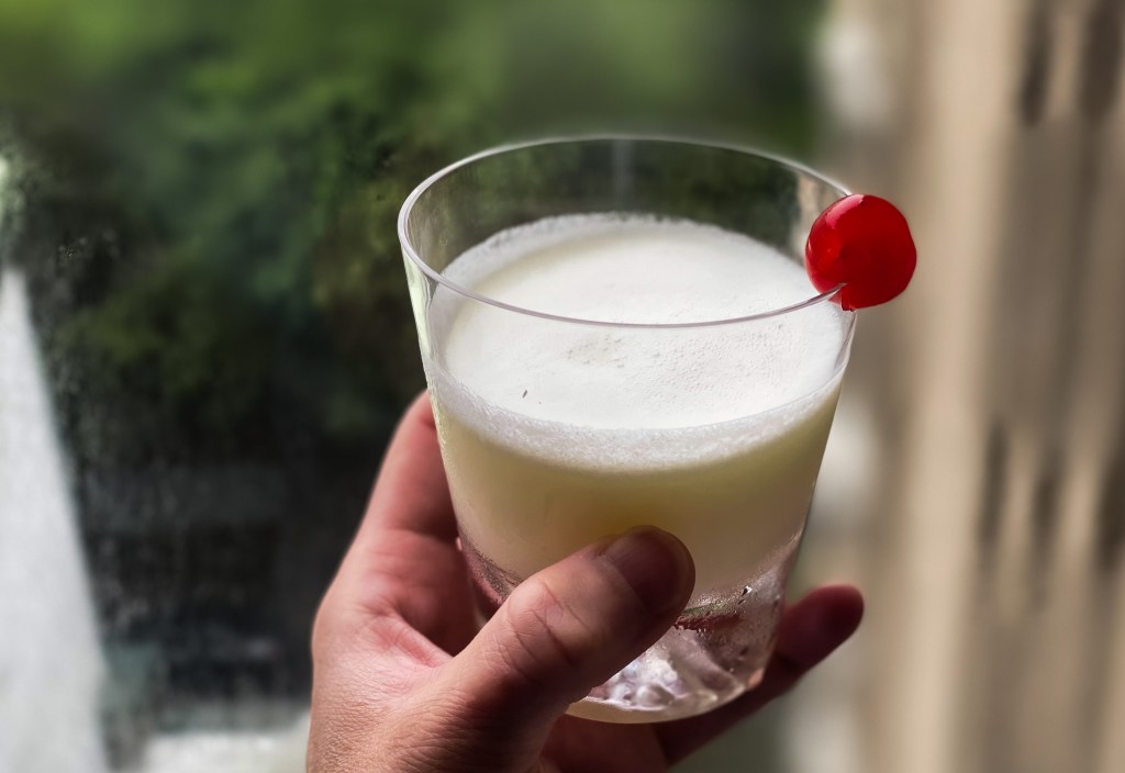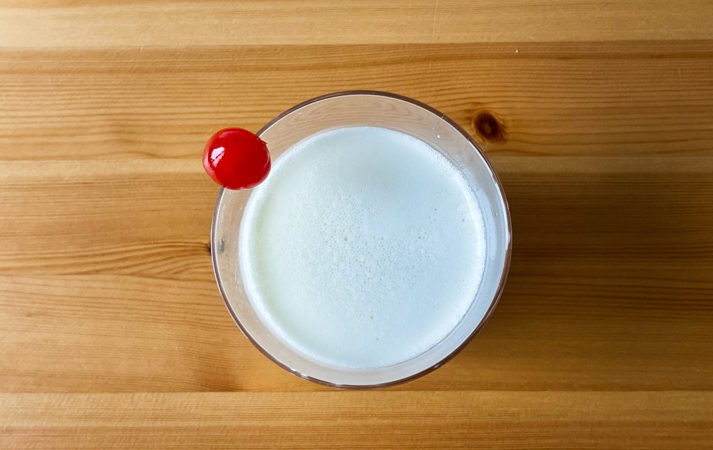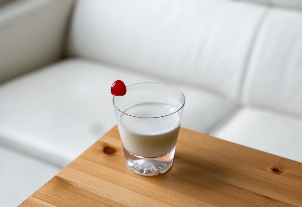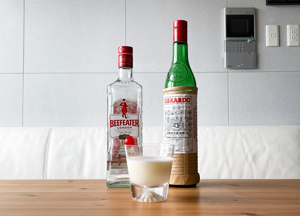 我飲下,冰涼乾順,酸澀,甜蜜後呈現澀澤感以及酒精滋味,有點優格飲品感,但會使你的精神柔弱而微醺。尤其Maraschino的滋味真的很強,他和琴酒的互融程度緊密結合,口感微綿而順蜜,這是奶油、果汁還有蛋白的撞擊成果。