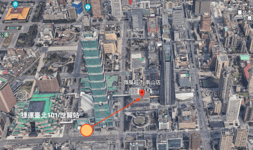 淡水信義線臺北101/世貿站(R03, Taipei 101/World Trade Center)→