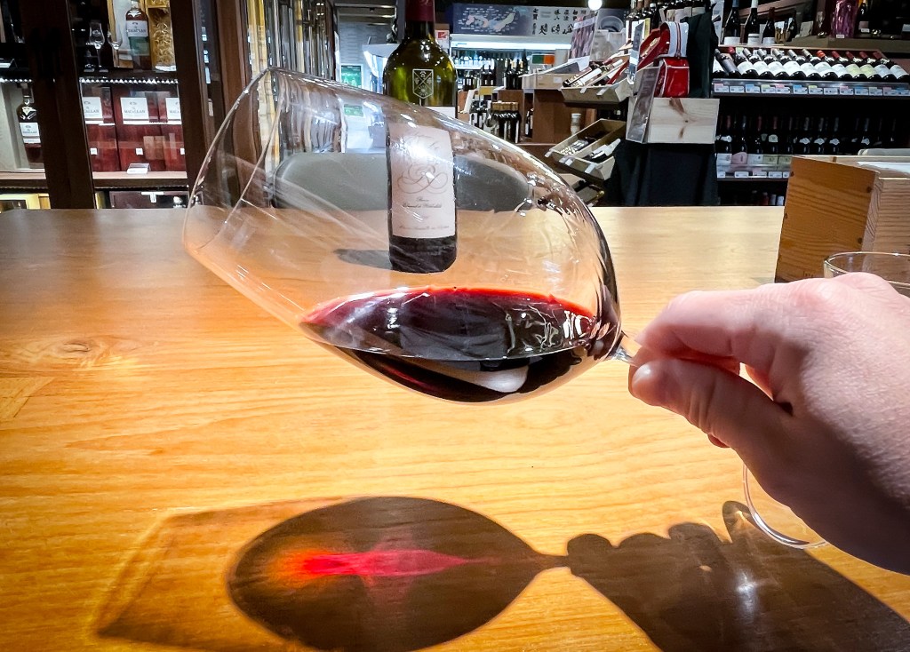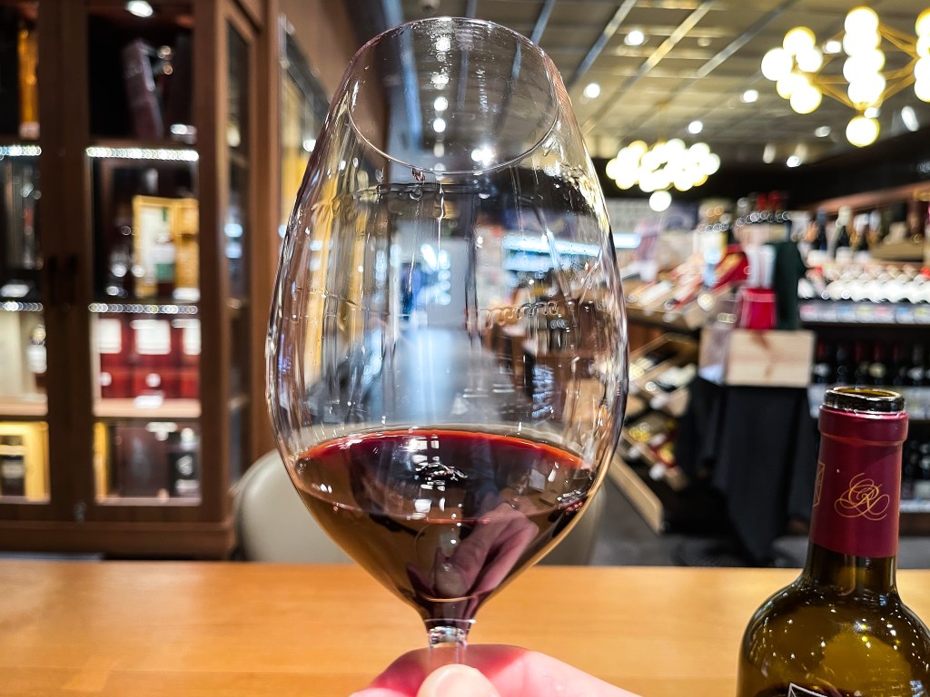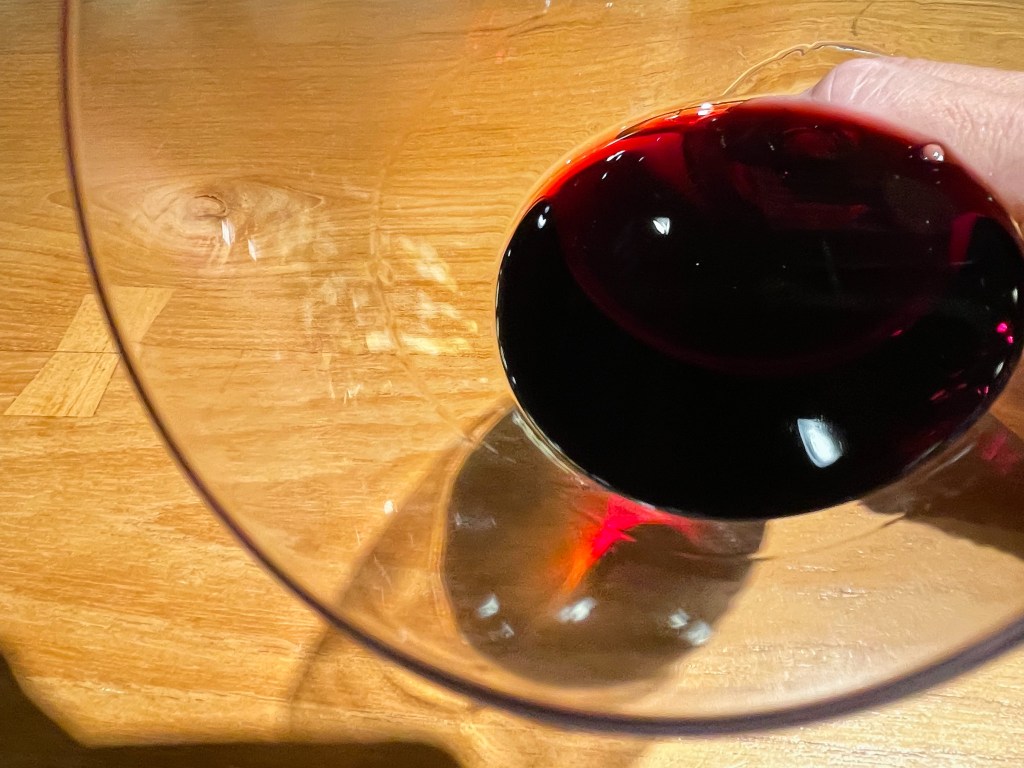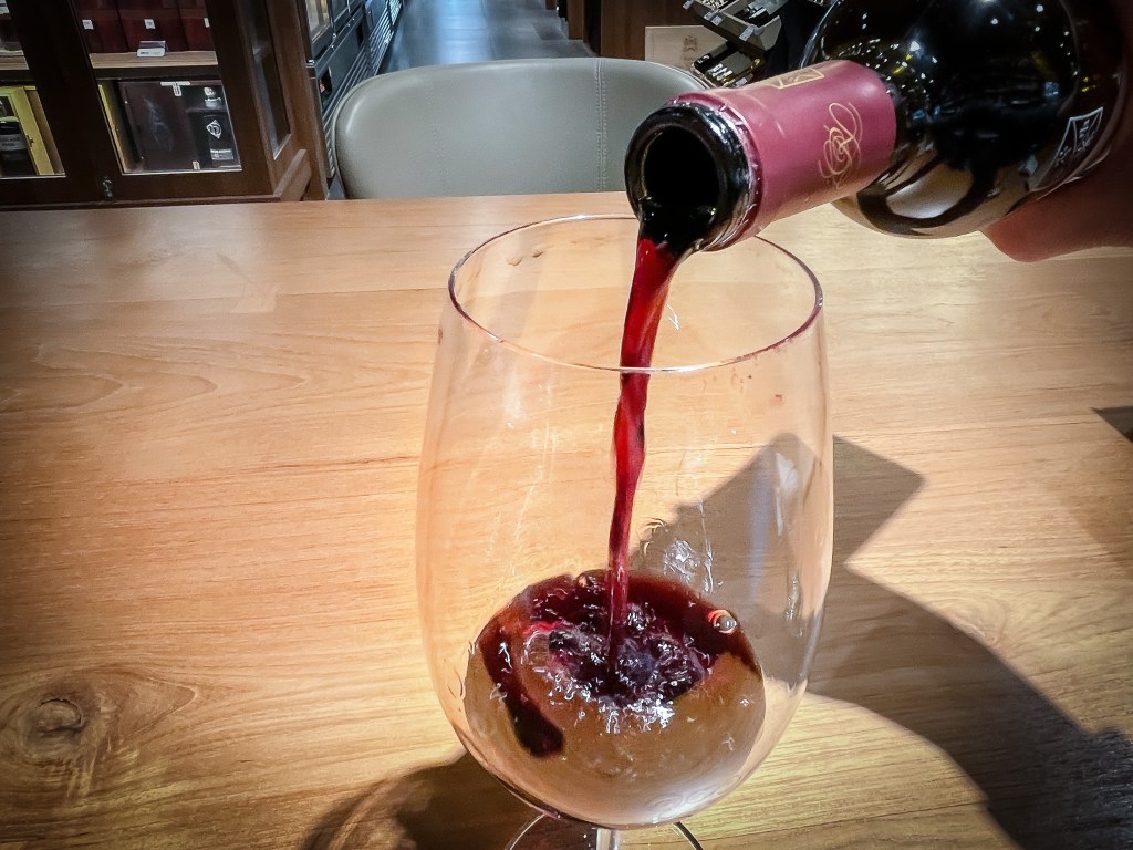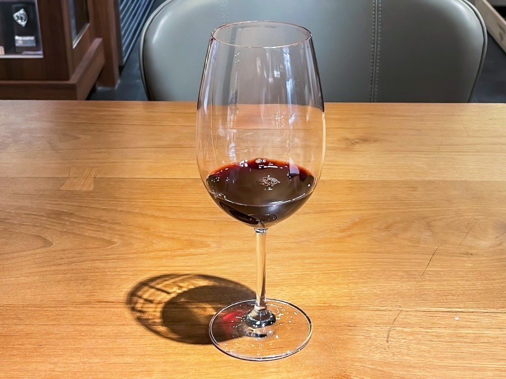 酒窖的服務人員相當熱情熱心,對這款酒也似乎有所了解。告知我這款酒需要醒一會兒。ok,我心裡當然相當明白。我將酒倒進了酒窖準備的Schmitt Zwiesel波爾多葡萄酒杯中,接著便可以開始享受晚間自己給自己的葡萄酒品味課。
