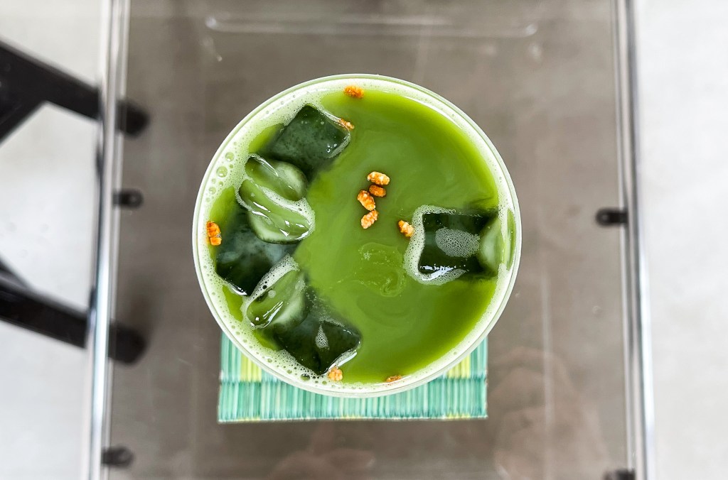 攪拌一下,飲用,冰涼舒服,濃綠的抹茶與牛奶攪拌,甘醇香甜當然那抹茶的清香青澀味鮮明。