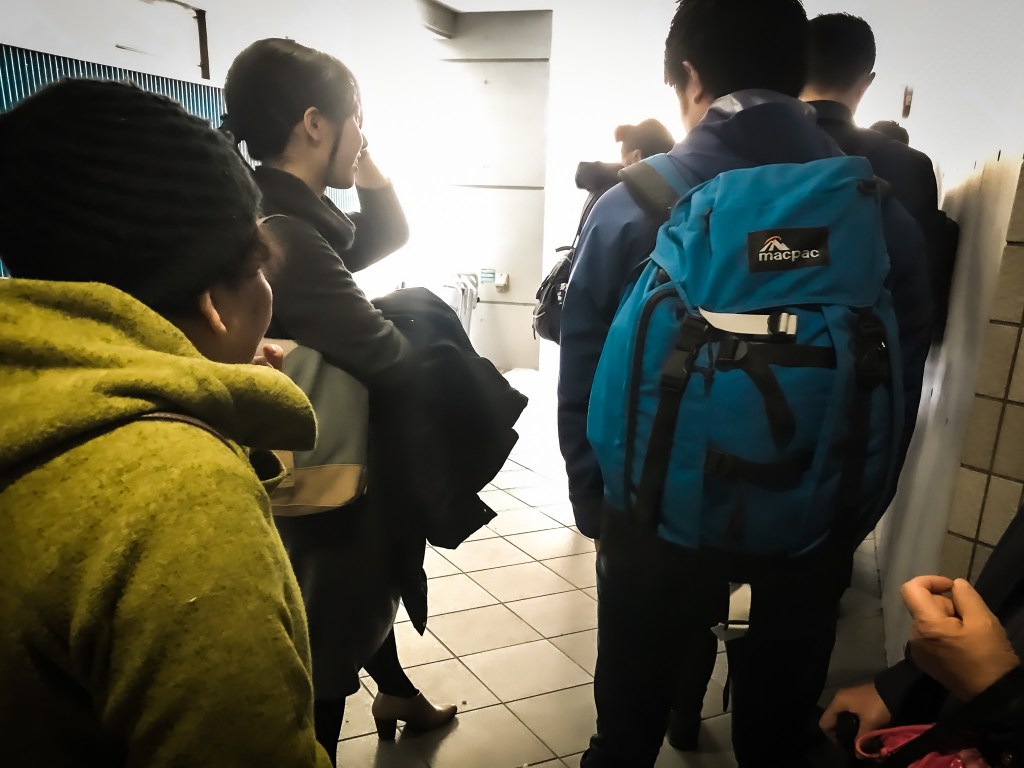 我穿個西裝鼻挺,背著包包坐在JR線上,享受著舒適陽光,然後打個小盹就來到了「巢鴨」。我出了站又得靠當時不太靈光的網路以及谷歌小姐帶路。不過也還好,方向感越來越好的我,不出15分鐘就找到了目的地,而且已經一堆人在排隊了。