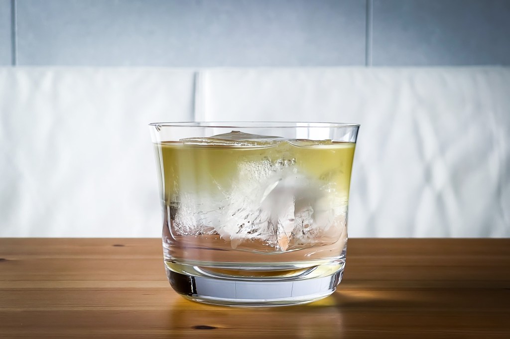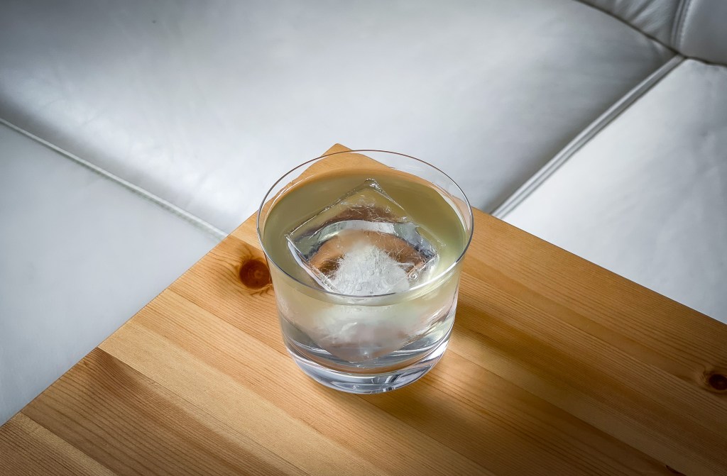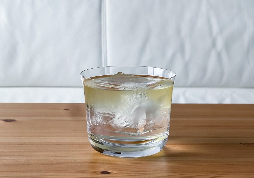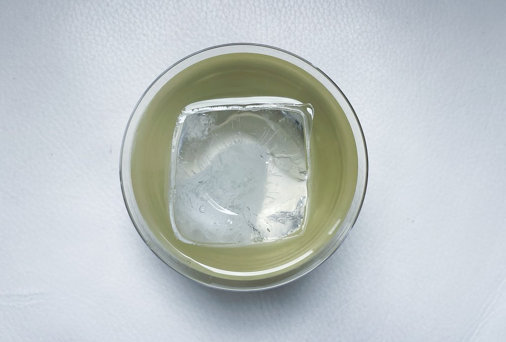 原本琴酒的緒發香味被遮蓋,口感是綠茶佐琴酒的平穩,和諧。但是這樣和過於激烈,於是必需攪拌。
