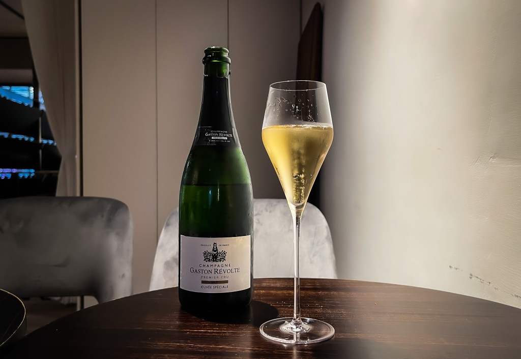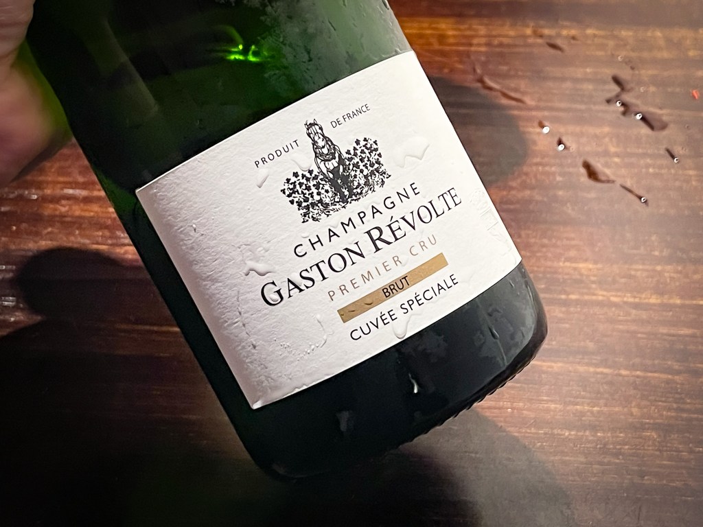 其實,這樣的氛圍本來讓我想喝個Rouge,但是看到一款Champagne,突然想嘗試它,它是CHAMPAGNE GASTON REVOLTE CUVÉE SPECIALE 1ER CRU BRUT NV(產地:FRANCE 產區:CHAMPAGNE 葡萄品種:20%CHARDONNAY、80%PINOT NOIR),其實我的香檳力很弱,今天也不知道為何會這麼選,是要挑戰自己的耐力嗎。