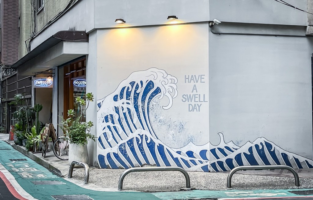 SWELL CO. COFFEE ,這間咖啡館轉眼間也挺多年的,尤其外牆的衝浪裡,展現這間咖啡館的特色本質。