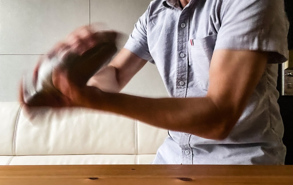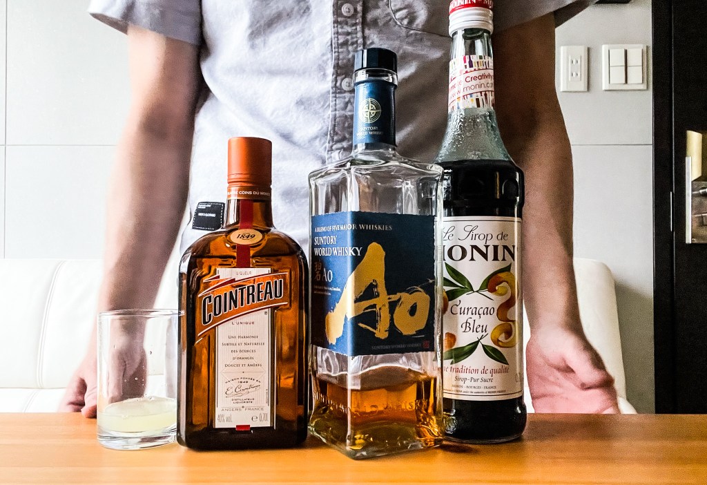 準備好我的專用Shake,並陸續加入Whisky 、Cointreau 、lemon Juice、以及藍色糖漿,最好加入冰塊後,蓋上杯蓋開始搖盪,大概等整個shake凍結我才罷休,打開蓋子將酒注入馬丁尼杯中。