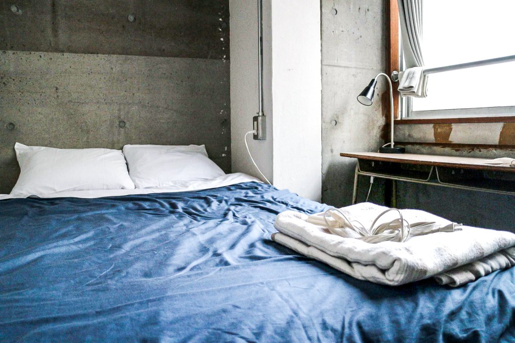 因為天氣寒冷的緣故,床上還有電暖被可以使用,由於床是屬於大床,這樣睡起來最為舒適,就算凌晨的氣溫達到0度,還不至於會冰寒。也可以將空調機的功能開為暖氣,房間自然可以到達一種符合舒適睡眠的溫度。