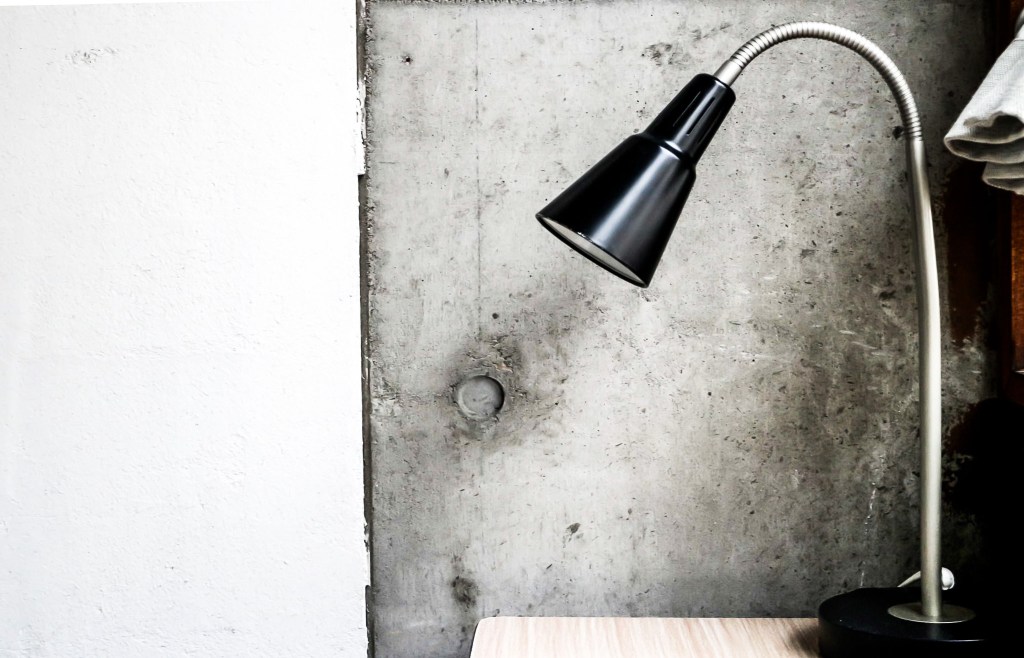 進門後是一張大床,空間不大,以水泥牆灰底牆面,設置一張靠前的板桌,恰好符合我的需要。