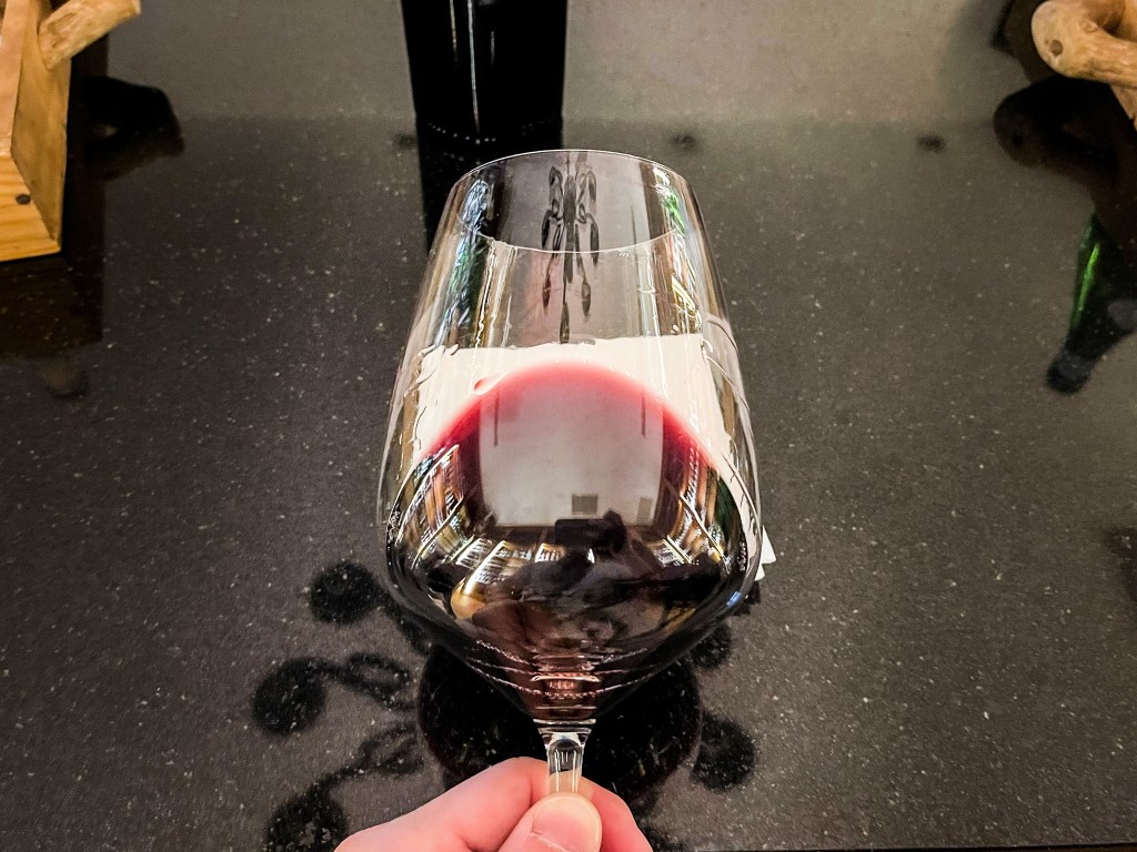 色調,是的,當一間代理Riedel的Cellar,那麼酒杯必定是Riedel,儘管是最簡單的酒杯,但也理想。酒色很深,深邃,酒體渾濁紮實,酒緣透明薄淡,微微的淡粉紅、小紅莓、覆盆子、集中酒體成為紫黑,混黑的酒色。