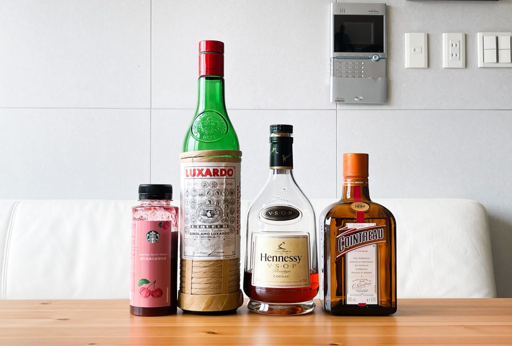搭配一點刺激性高的櫻桃酒以及香甜的橙酒搭配,也許這是孤注一擲的調配法了,材料為下: