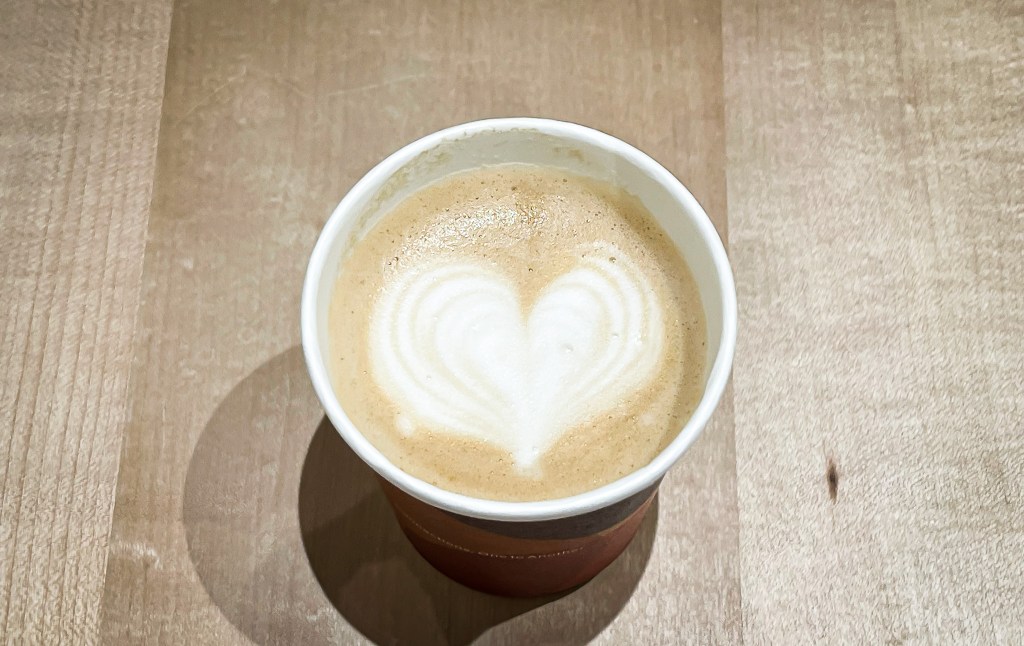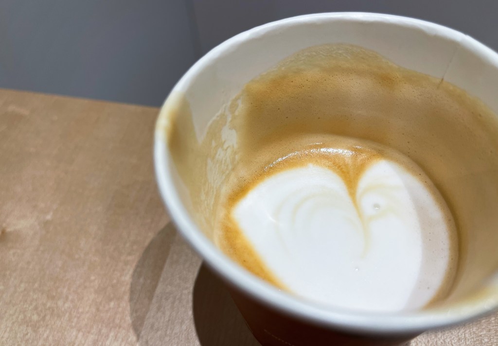 嗯,今天的拿鐵都是小Size的,所以急需有一點咖啡拿鐵的我一下就要了兩杯。打開杯蓋,淡色的泡沫一顆佔滿版面的拉花,由於杯子小,便沒不會感到有什麼驚奇之處。