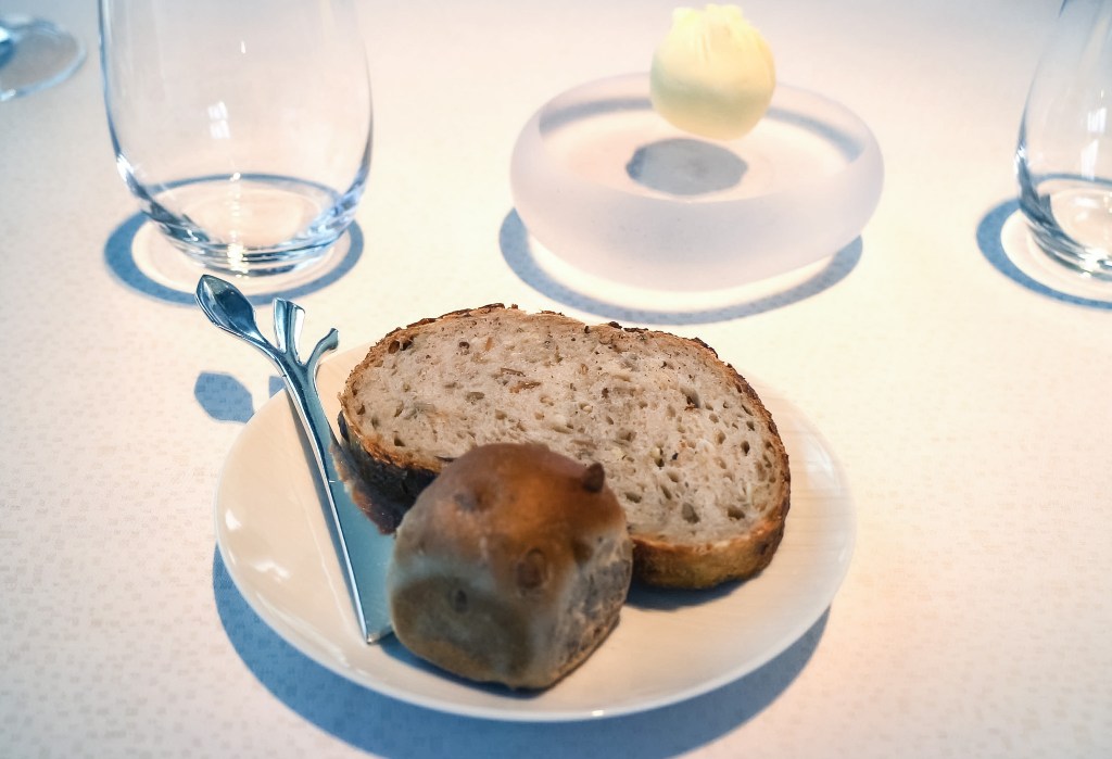 餐前的麵包使用傳統法式麵包、全麥麵包以及一些些的餐包,但有些可惜的是都是常溫甚至有些冷,有些可惜,不過奶油品質相當不錯。