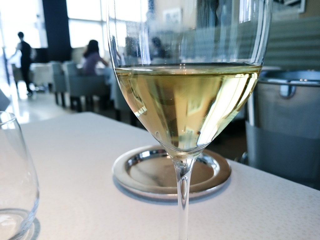 我一如往常,在米其林餐廳內我仍要細細品味葡萄酒的美妙。先看一下色澤,這或許年份的關係色澤偏深成黃金糖一般清爽色澤,酒腿挺銳利光滑,僅管倒入些微混沌,但穩定厚植地仍是相當清晰美麗。