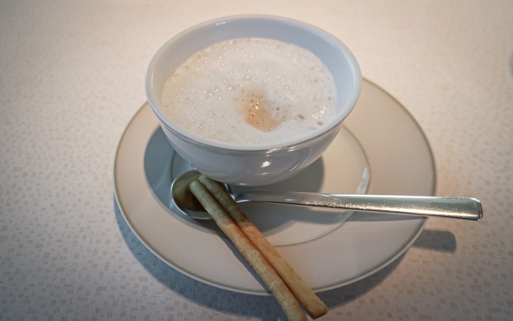我點了杯咖啡拿鐵,習慣加糖的我還是一樣加兩三顆,讓第一間米其林餐廳的序曲作個完美的結束。