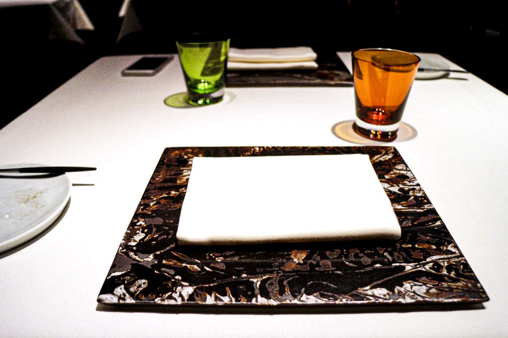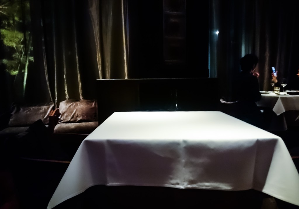 RYUZU位在大樓的B1,環境設計時尚優雅,進門後服務人員同樣會為您褪下厚重的外套以及協助你寄放背包然後再引領你入座,餐廳的中間廣場擁有較多的座位,約可容20人,此外亦有包廂座位以及吧檯位置,從餐廳的設計方式不難看得出有那麼一點侯布雄餐廳的影子。