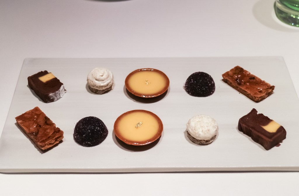 最後的點心有5種,杏仁餅、黑醋栗水果軟糖、檸檬塔、杏仁餅以及一塊巧克力蛋糕,搭配著紅茶品味,緩和一樣這一餐的美味,而且真的很飽。