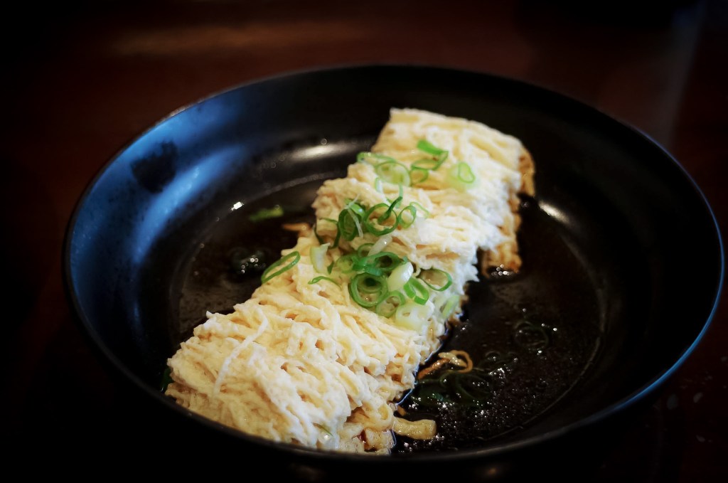 這道主食是以切丁的豆腐,以及丁點顆粒狀的魚卵,還有薑末氣味與調和的麻婆豆腐風格。這間餐廳的料理風味總是抓住我心,香濃不過鹹不膩,食材原生滋味和醬汁淋醬稠綿柔和,辣豆瓣、薑以及蔥段帶出激情的辛香,好吃美味。一定要搭白飯,真的美味,會情不自禁的一口一口的扒飯。