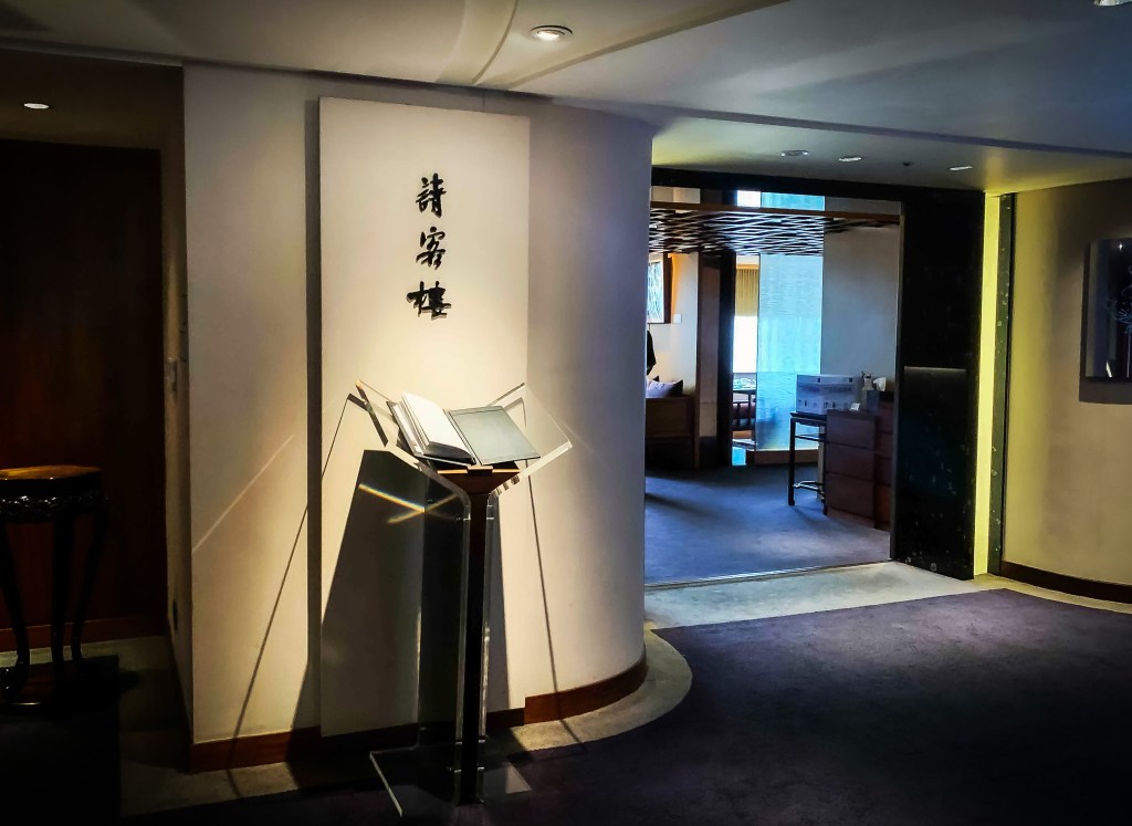 請客樓是川揚料理,且自臺灣米其林指南迄今,年年均摘下二星,品質相當穩定。因此用葡萄酒來搭配,我相信應該會是最好的選擇。來到飯店大廳後,得走向電梯搭乘到17樓。出了門口,便可看見這間獨一無二的餐廳。走到了服務櫃台,就會看見米其林指南給予的二星肯定標示。
