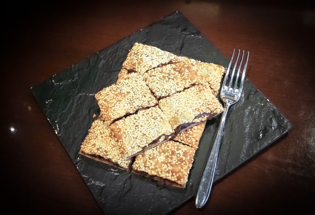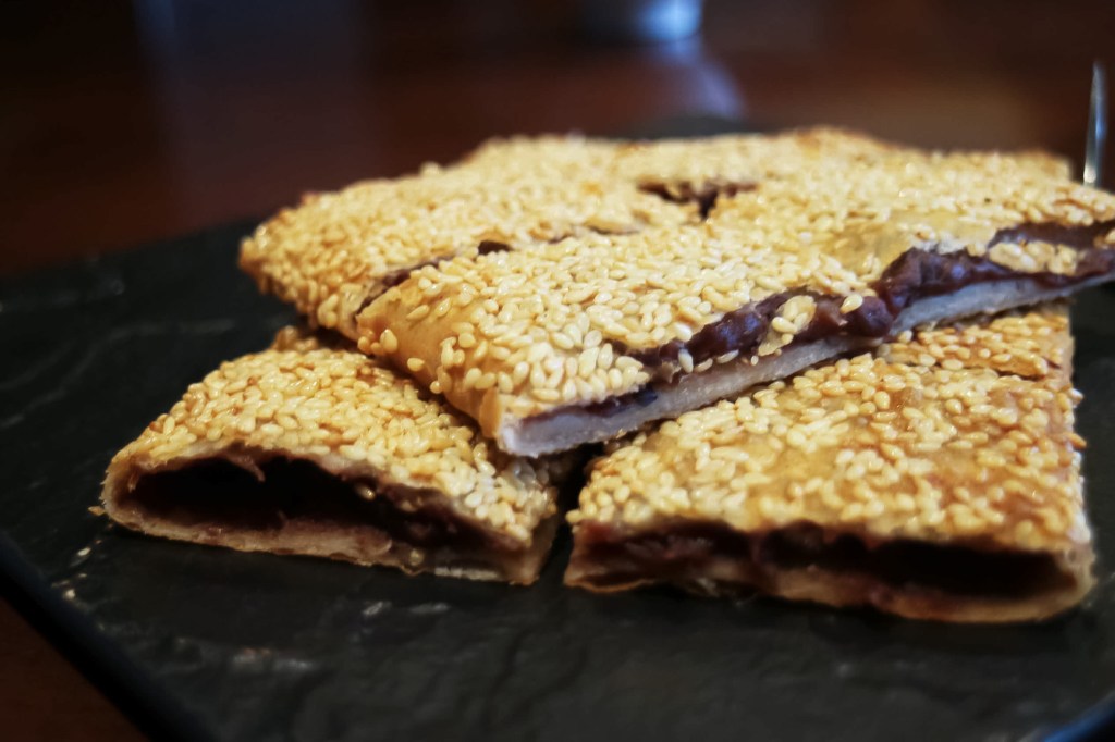 這是最後點心,我還是決定點最愛紅豆煎鍋餅。這裡的鍋餅不油膩也不添加其他味道,也不搞鹹甜交錯,外脆與芝麻香,內柔黏還有紅豆泥砂的甜香,口感舒適,很乾脆而好吃的中式點心。