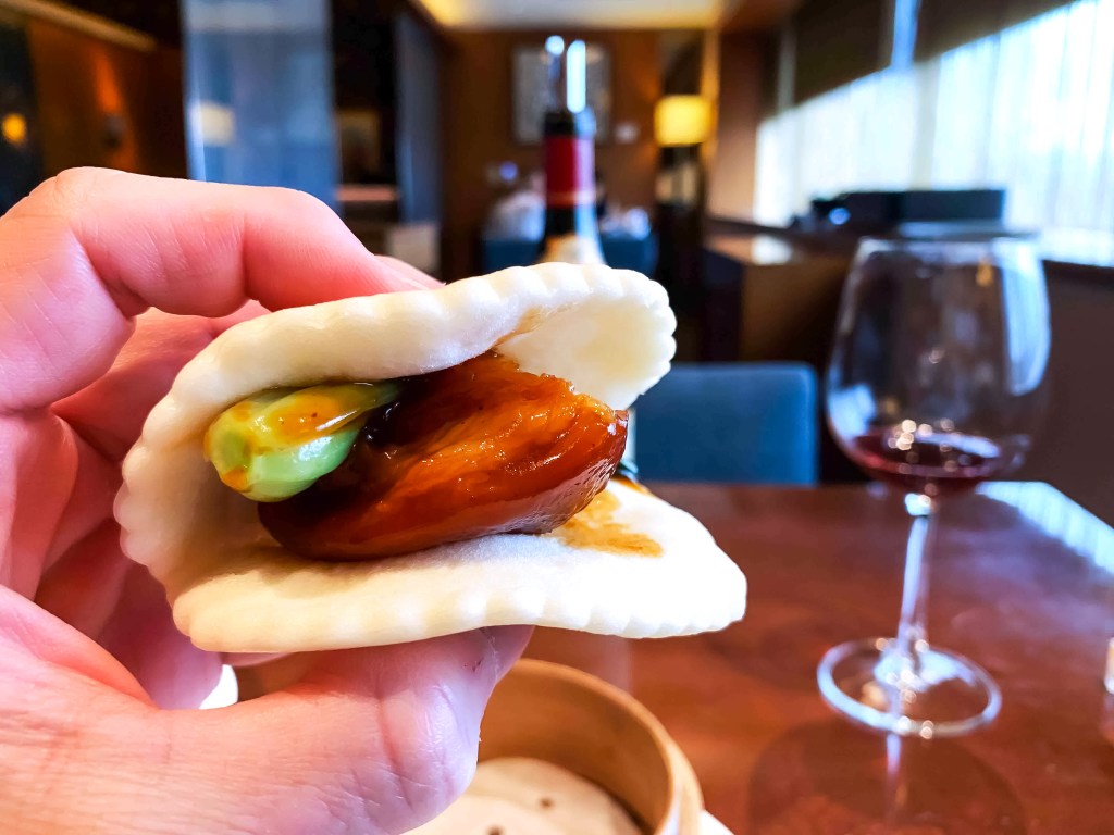 搭葡萄酒,又出現我愛的酸香果甜滋味,同時帶著溫和皮革酸氣,滋味甘甜溫和,真的適合搭配。做成話刈包,夾心後吃下,有肉汁美味與,皮嫩或皮韌感,分層而清楚的口味。再搭一次葡萄酒,同樣溫和舒服柔順清楚,沒有厭惡只有教皇新的的個性和特色。