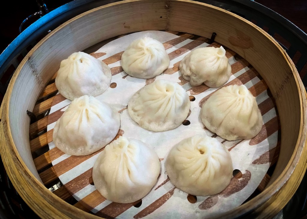 接著服務人員端著蒸籠,遞上了第二道點心「蘇式小籠湯包」。