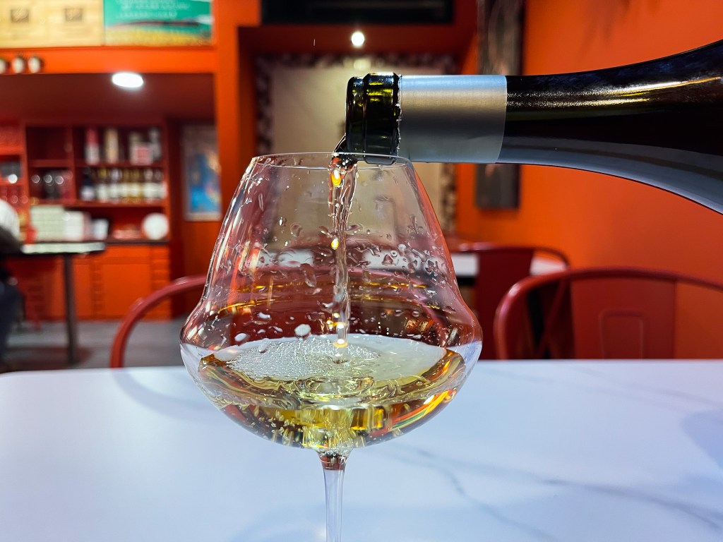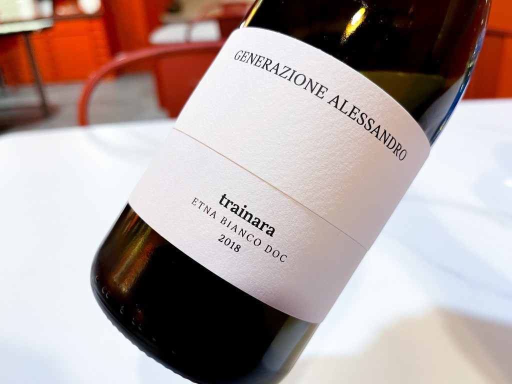 店內規模不大,卻也感受到佈置擺設切合義大利,尤其是地圖以及產區地圖。葡萄酒置於木架上,由於炎熱,想要一點水果風味的白酒,就隨意挑選了一款GENERAZIONE ALESSANDRO TRAINARA ETNA BANCO DOC 2018(產地:Italy 產區:Sicily,葡萄品種:Carricante80% 、Catarratto20%)。