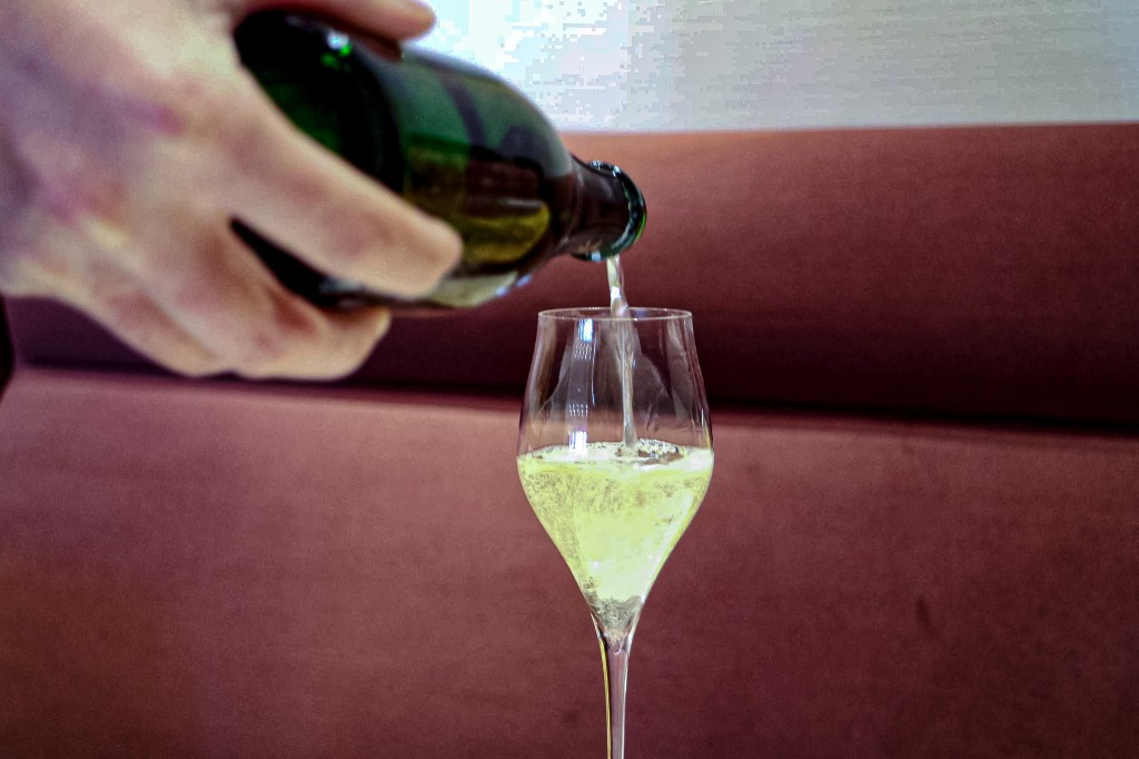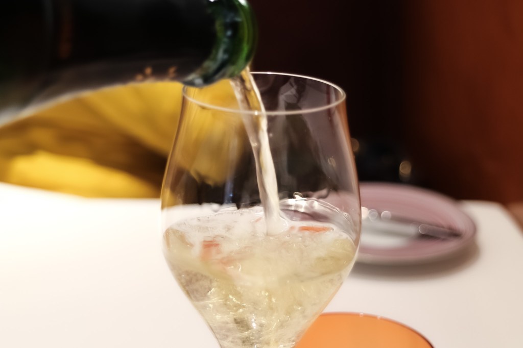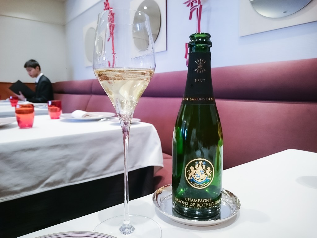 當然也少不了點一酒,而這天中午可不能太醉,所以選了支375ML的Champagne Baron de Rothchild NV(產地:France 產區:Champagne 葡萄品種:40%Pinot Noir,60%Chardonnay),對這款香檳其實不陌生,但在法式餐廳要JPY5000的話,似乎在是很普遍的價格。好的,先來介紹一下這款酒的身份吧。