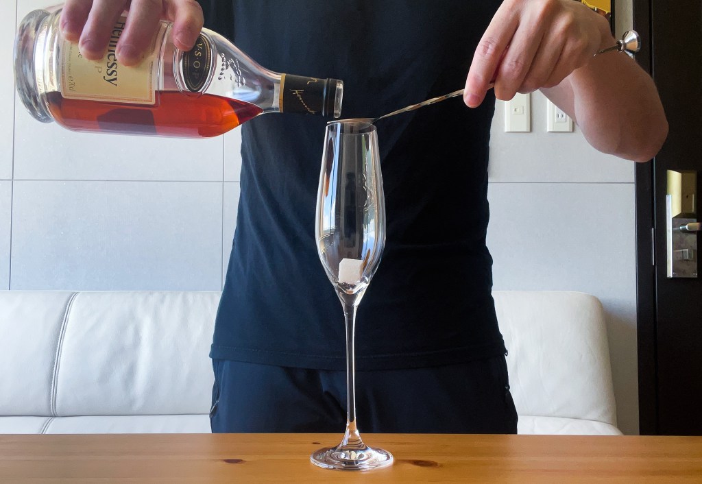 我攤開上田和男的調酒書,看見一杯特別適合現在的心情與意念的雞尾酒,是的她就叫做香檳雞尾酒Champagne Cocktail。