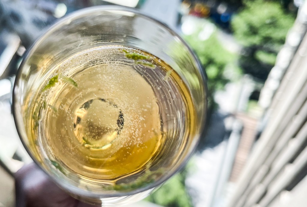 今日早上起床,氣候依然美麗。我看看窗外,遠方的山以及灰白相間的雲朵,在耀眼的金色陽光下格外白皙透亮。依習慣,我整理一下客廳,同樣放著一些老音樂,營造一種在家的小確幸。聽著聽著,突然想到是不是該搭配一杯香檳呢?是呀,昨天的香檳還有半瓶呢?但是,品味香檳似乎單調一點,是不是再找杯關於香檳的調酒呢?
