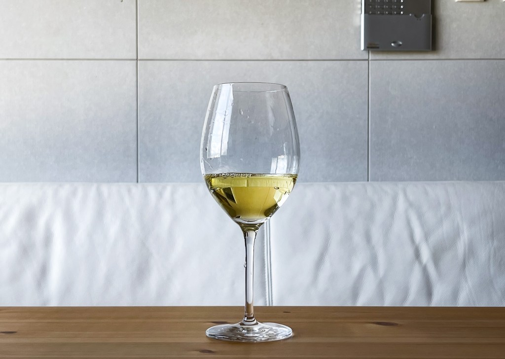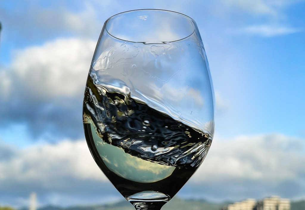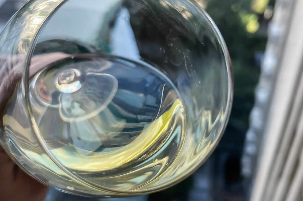 先觀察色調,在夏天品嚐白葡萄酒是最詩情畫意的在,平視這色調呈現深色的金黃琥珀感,猶如黃金金磚的亮麗冶豔,當然斜躺酒杯再來觀看色調,會比較精準一點。