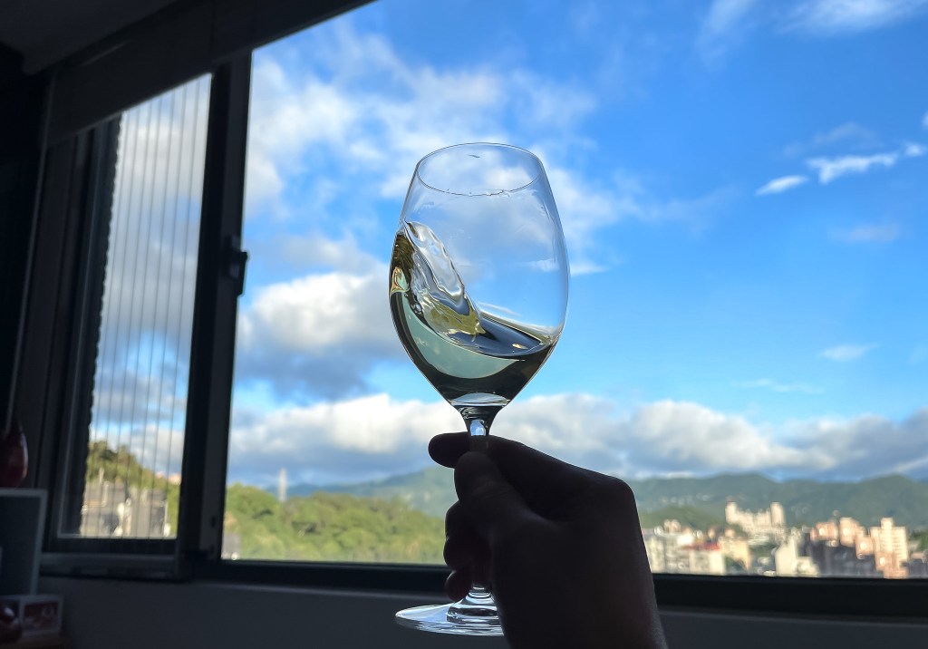 我在家裡開著冷氣,此時此刻的涼爽,搭上一杯葡萄酒以及一些音樂,營造最好的品飲還境。