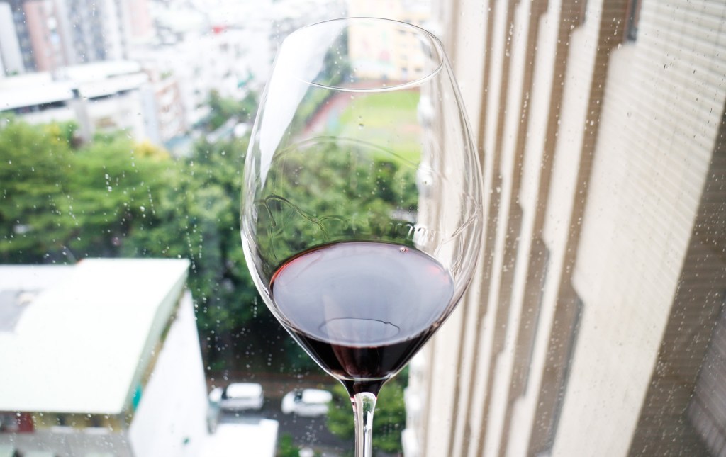 我先觀察色調這是深邃的寶石紅色,卻又像棗泥一般的淬紅。搖晃酒杯時,酒液不斷的在酒杯杯緣留下細緻而優雅的痕跡,這就是酒腿,這就是酒淚嗎?酒緣銳利光澤卻略帶紫紅的色澤,由外向內不到個幾毫米就進入深邃的寶石紅色。