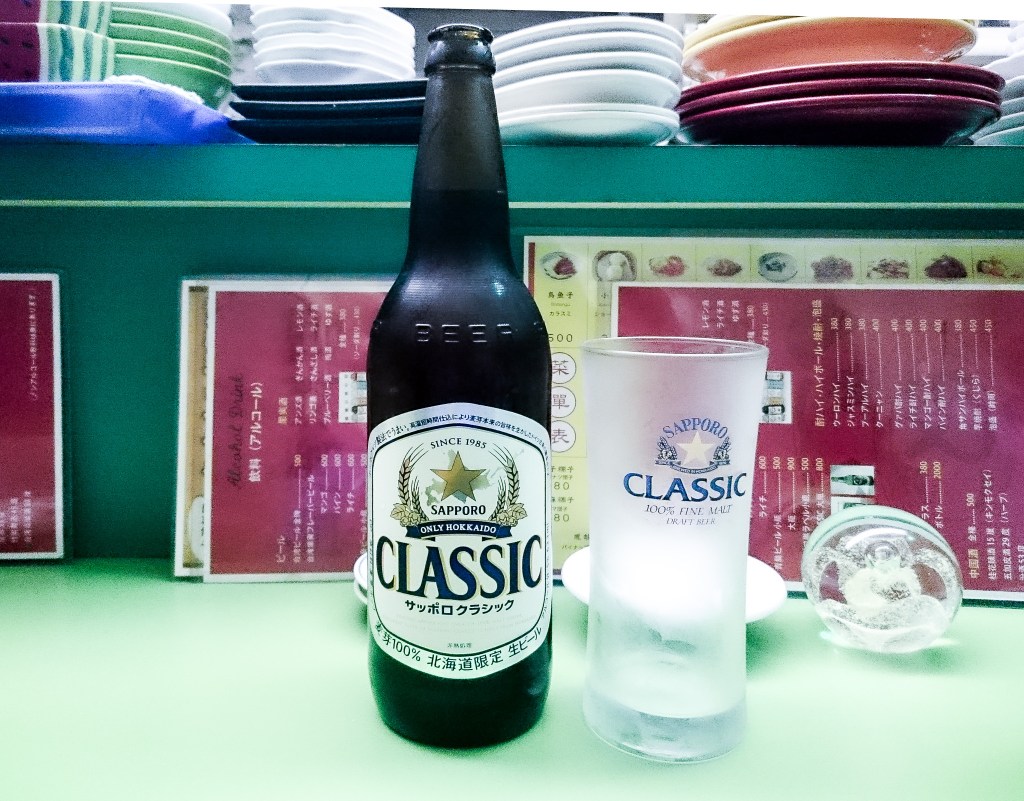 在札幌,SAPPORO CLASSIC無時無刻不出現在周邊,但是來到這裡怎麼不能好好的爽喝日本啤酒。除了第一天喝了一大公杯外,今晚在以札幌啤酒與台灣料理作伴,享受一下小巷弄的夜晚。