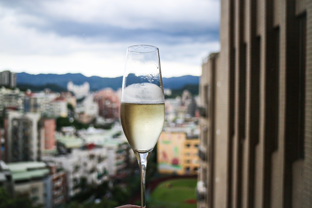 香檳,夏日午後,喝她絕對幸福享受而高尚,看來今天不會有午後雷陣雨,那麼,不但可以在灰中帶亮的光線品嚐,也可以安靜的品飲。