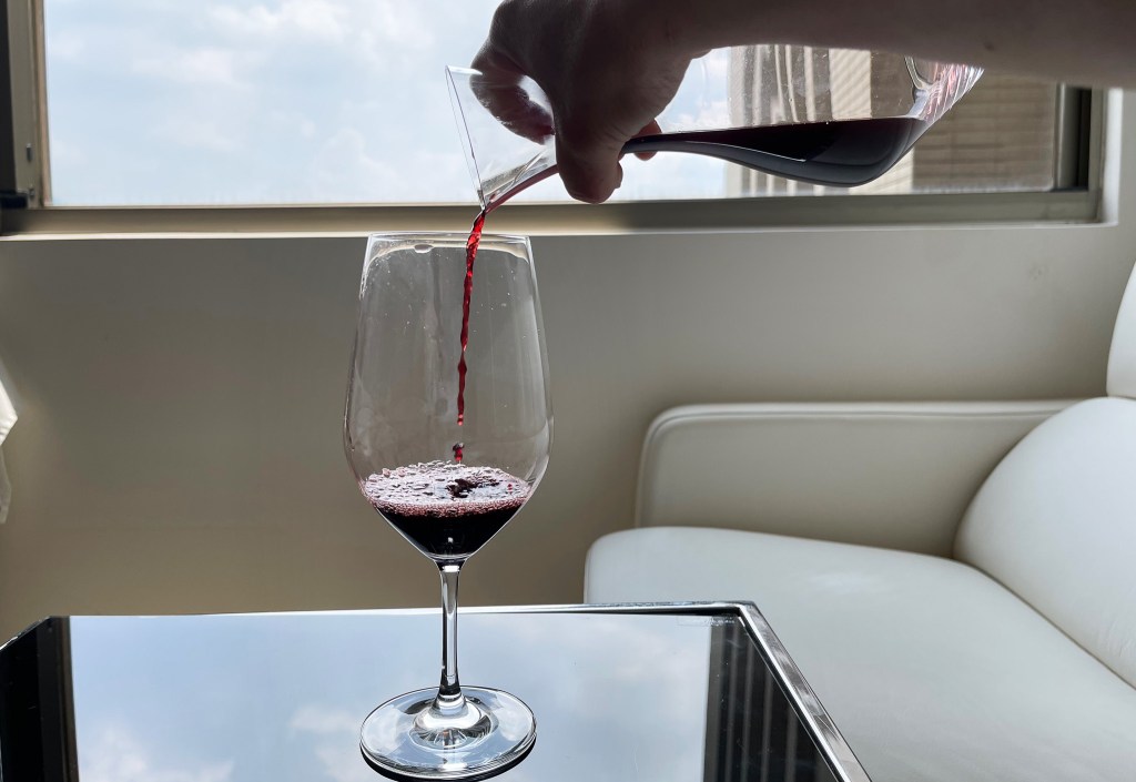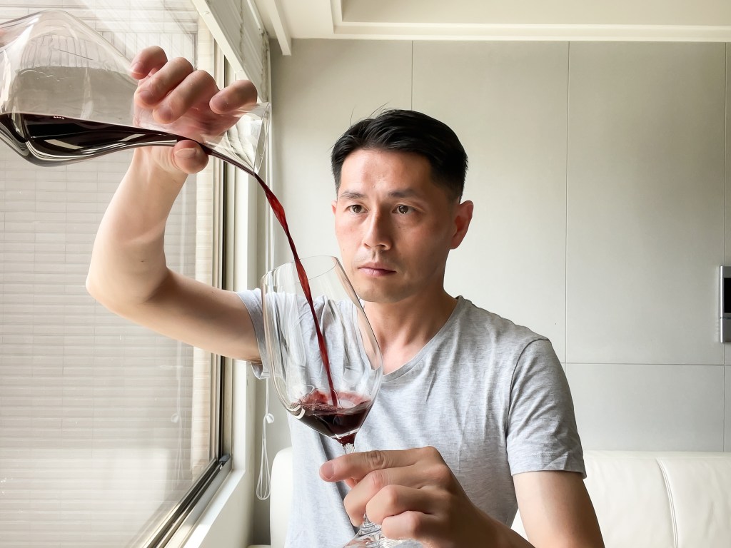 我想醒酒後是否能將香氣引出來呢?我將葡萄酒倒入醒酒器些許,然後再搖晃酒器希望能接觸更多空氣。