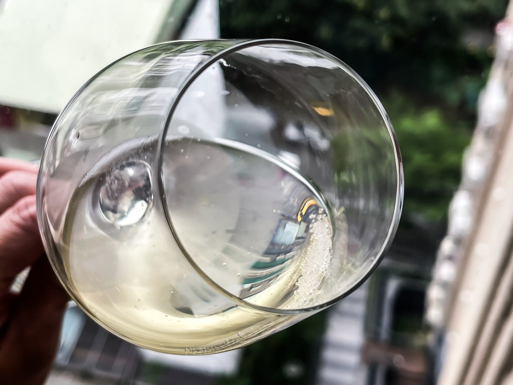 剔透輕盈的酒面彈跳活躍的氣泡仔細觀看心情也跟著雀躍,精神也跟著活躍起來。雖然在灰色天候的反射,讓酒色看起來偏稻黃,但實質關插起來則是輕盈的酒色。