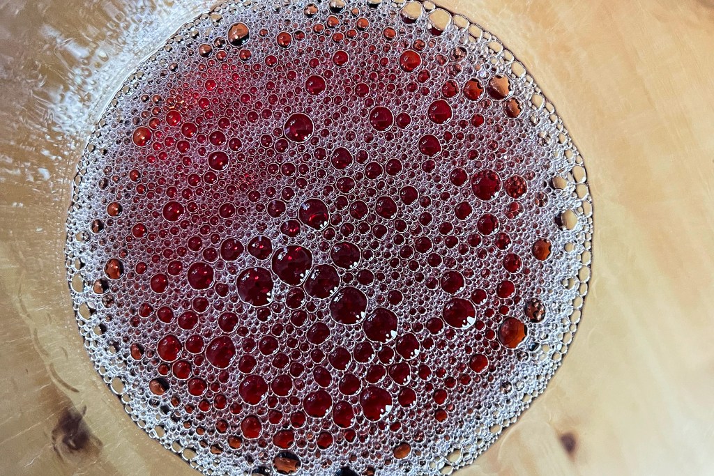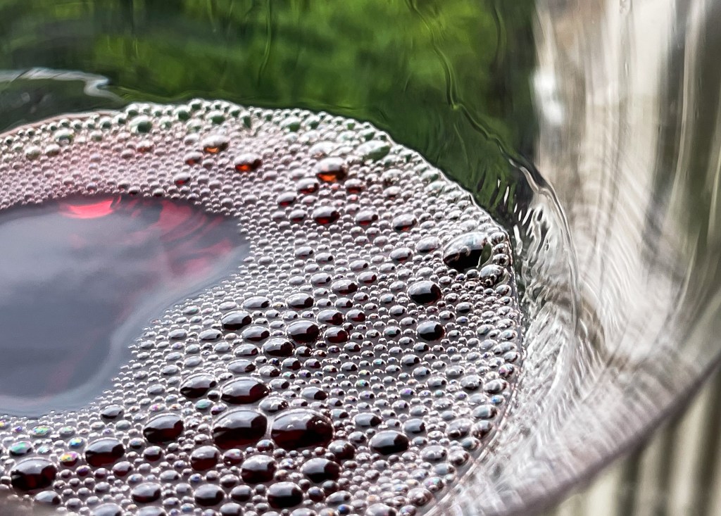 顏色就不談了,不過刻意以Rolling (滾動法)方式讓葡萄酒裡的空氣擠出,滿滿的泡沫倒是一種相對的景色。