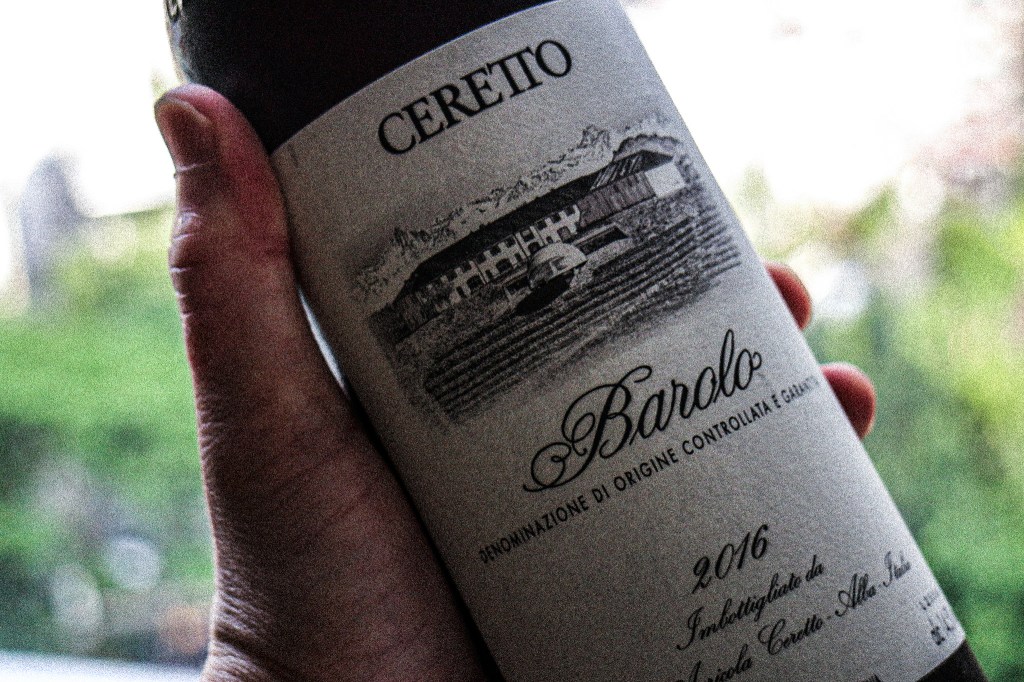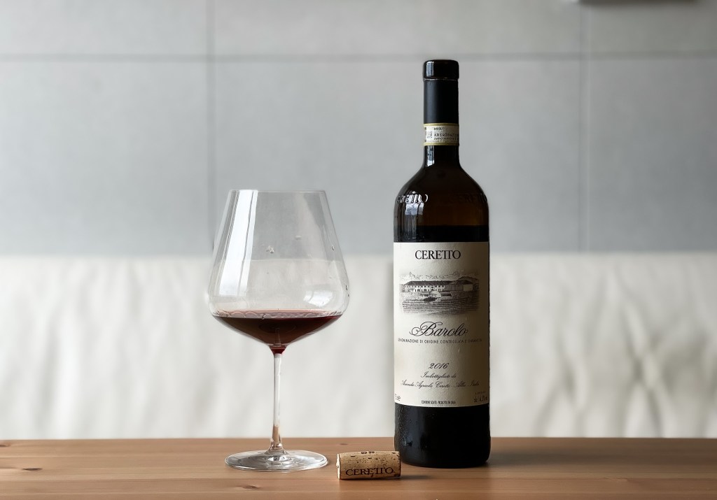 不過,炎熱的夏日不是應該喝白葡萄酒或是香檳尤佳嗎?但是我現在卻是心屬紅葡萄酒。於是從酒櫃中觀察觀看,照一款今天想要品味的葡萄酒,於是取出了它Ceretto Barolo DOCG 2016。
