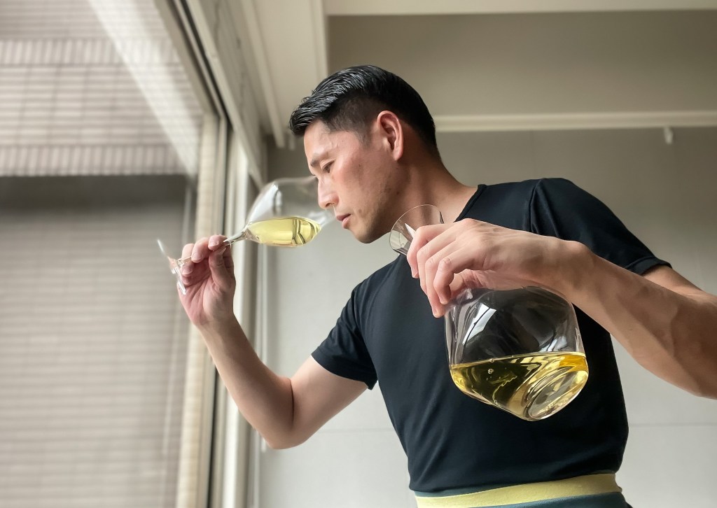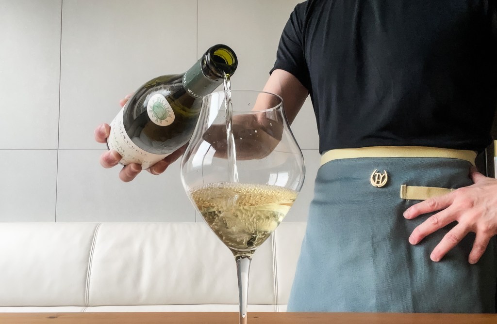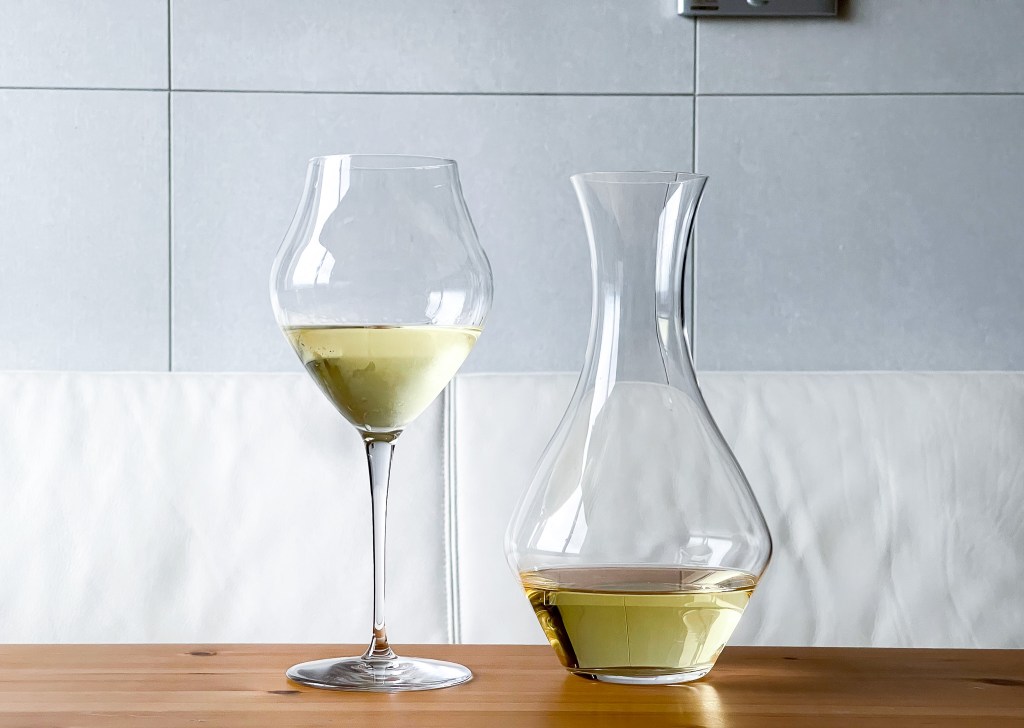 我同樣喜歡Rolling方式把酒拉高,重重的注入醒酒瓶裡,因為如此而衝擊出氣泡,再數度搖晃酒杯,強化與空氣接觸。