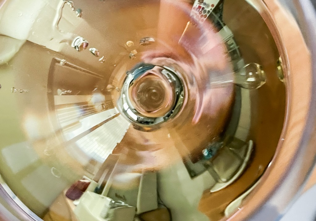 我想,用金黃色,淡雅金黃等來形容它都可以。酒緣透明俐落且感覺,儘管短薄而進入銀黃、淡黃,然後快速進入淡金黃色飽滿,且酒體為如此的讓淡雅金黃給佔據。