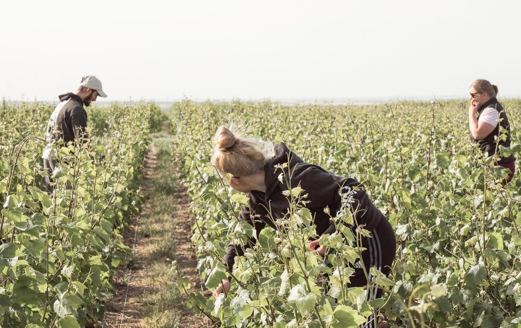 當我們抵達家中,首先見到至少有3個世紀歷史的大門敞開,然後母親和女工熱烈迎接,並給了每個同學一條釀酒大師使用的傳統白色圍裙。約莫下午2點時,酒窖中曾擔任過中士的外籍員工Serge,他用1953年曾在「越南奠邊府戰爭」(Battle of DIEN BIEN PHU in Vietnam)曾為法國軍隊吹過的號角為我們吹奏,準備出發。但是,當我們穿上褲子和迷彩夾克並穿上靴子後,Serge就以軍中嚴格管理方式檢查了我們的葡萄小農隊伍。什麼缺失都逃不過他銳利的眼睛,例如杯子不見了,修枝剪器材安裝方式不當…等,當他檢查無誤後喊道:“Off we go for the great adventure!”,孩子們都像剛加入的新兵一樣爬進拖車。