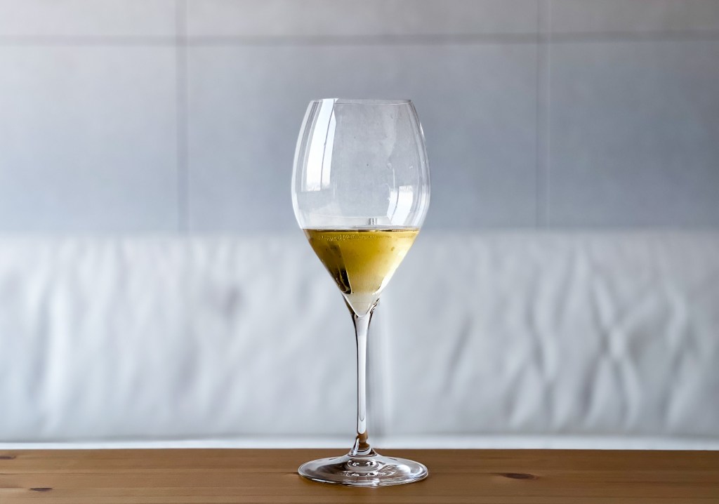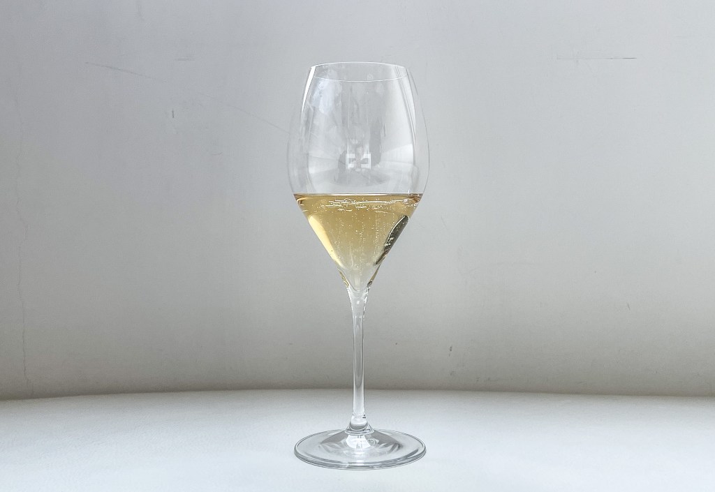中味的乾爽紮實氣泡帶來的礦物味、岩礦味,同時也產生酸澀,檸檬酸澀迷人優雅。